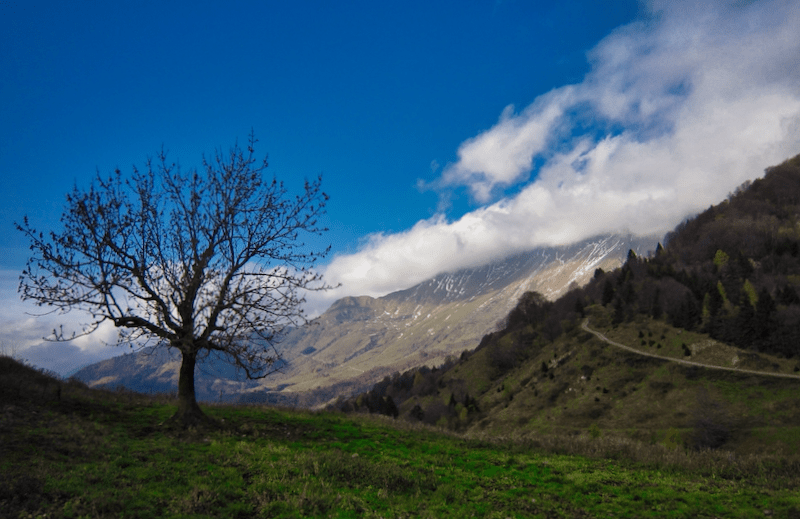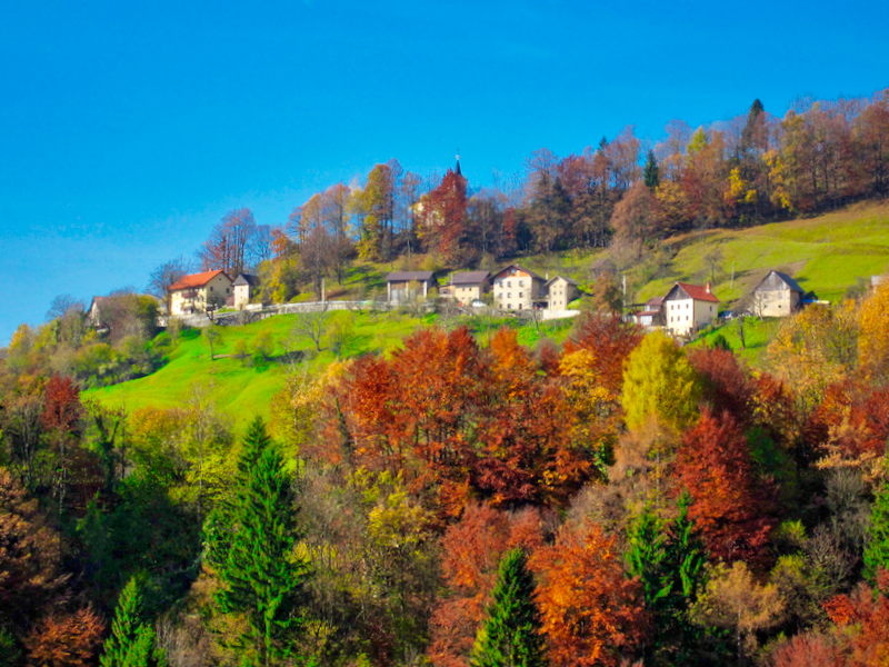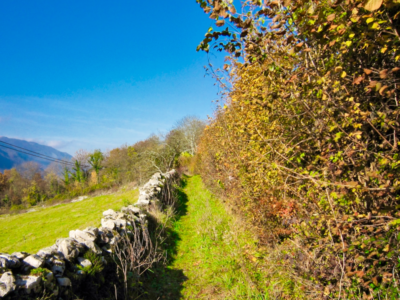 Si arriva così alle prime case di Krn, continuando sulla stradina cementata fino alla principale asfaltata che va seguita a destra con una curva secca in salita: le indicazioni da seguire d’ora in poi sono quelle per il Mrzli vrh o anche Pot Miru, il Sentiero della Pace.