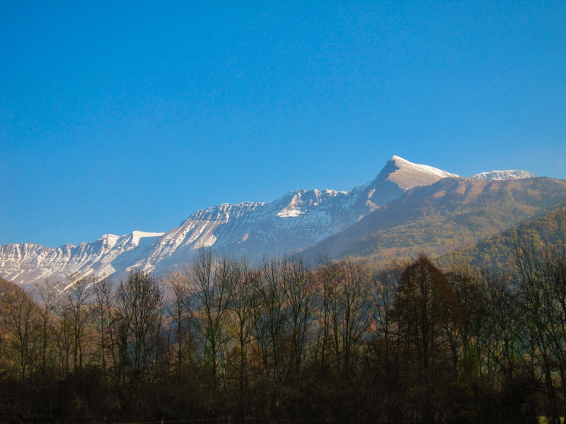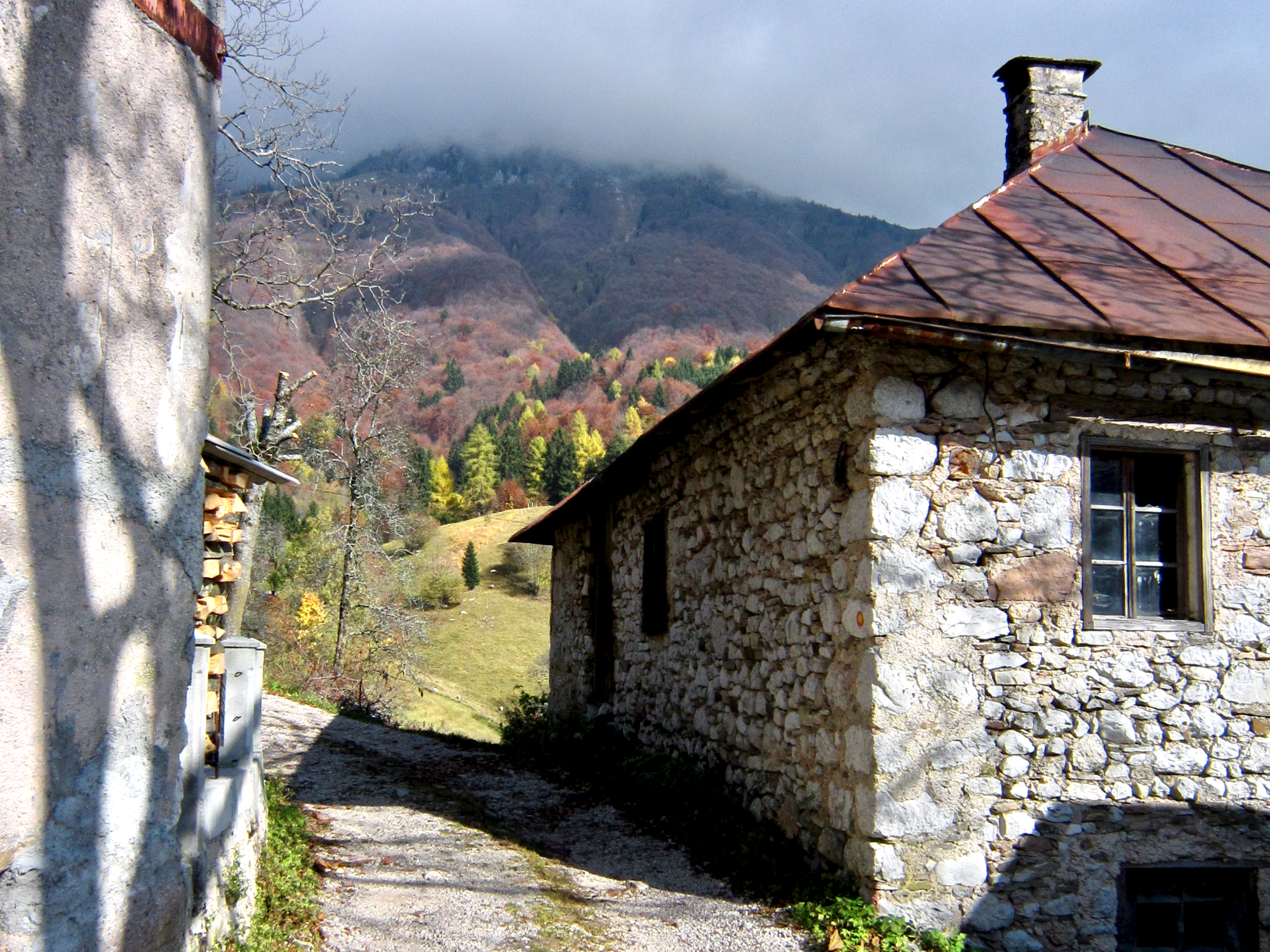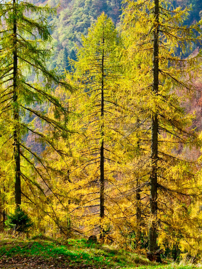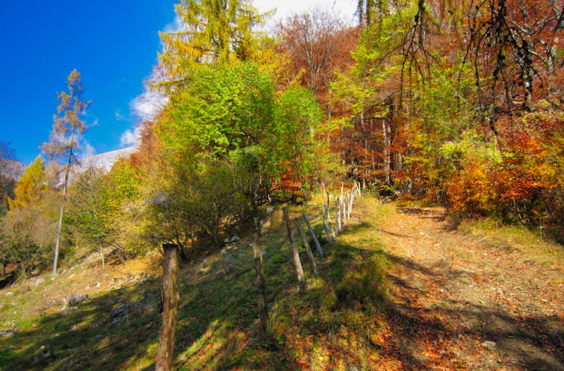 Itinerario: si parte da Gabrje, un paesino sulla destra orografica dell’Isonzo tra Tolmino e Caporetto. Uscendo dal paese in direzione Caporetto si prende una stradina asfaltata in piano sulla destra della principale che diventa subito dopo mulattiera con a valle un bel muretto a secco. La mulattiera indica già la direzione che si manterrà a lungo, salendo più o meno regolare sul fianco sudoccidentale del Mrzli vrh, noto per le più sanguinose battaglie fra Italiani e Austriaci nella Prima Guerra Mondiale. Ai 560 metri circa si gira un costone e si passa sul fianco occidentale della montagna, quasi sempre in ombra: da qui in poi ci si deve rassegnare al fondo più fangoso della mulattiera, che si fa ripida ed ostica, si attraversano due ruscelli e si scende a piedi in più di un occasione per via dei cancelli da aprire e chiudere: in questo tratto il segnavia da seguire è quello per Krn, il paesino sotto l’omonima cima che si comincia ad intravedere fra gli alberi. In ottobre qui i larici sono al massimo splendore, e lo spettacolo è assicurato.