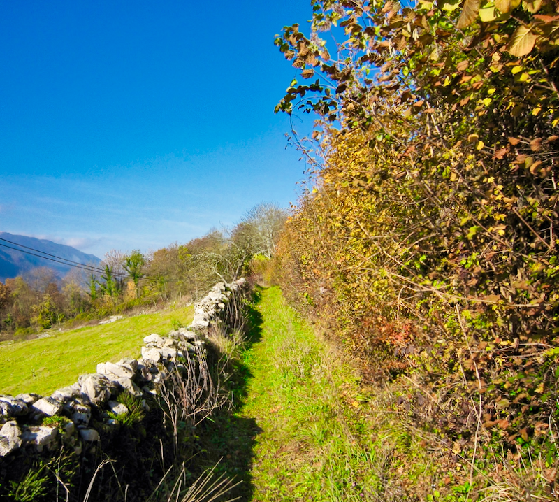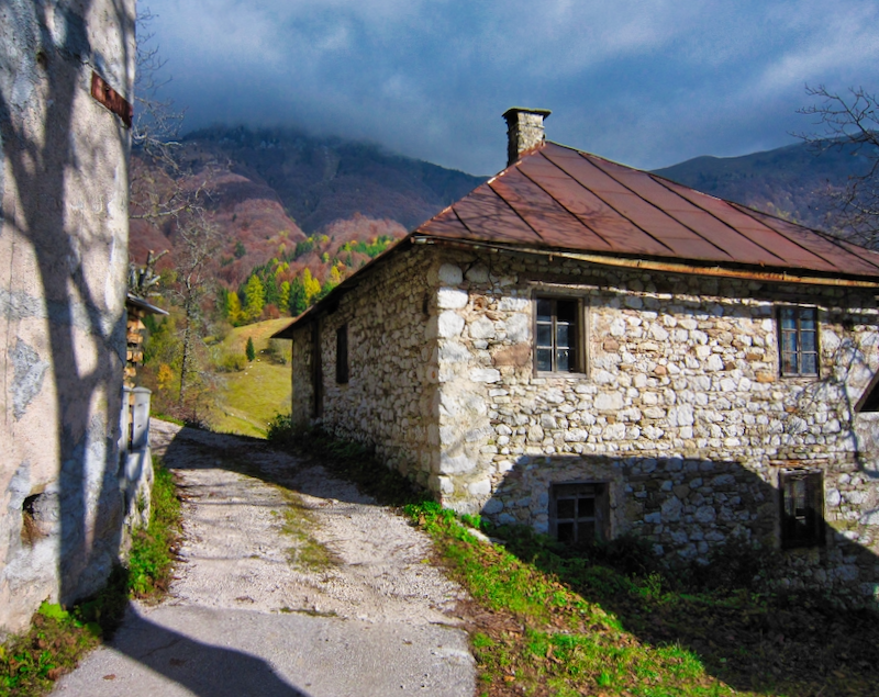 Si arriva così alle prime case di Krn, continuando sulla stradina cementata fino alla principale asfaltata che va seguita a destra con una curva secca in salita: le indicazioni da seguire d’ora in poi sono quelle per il Mrzli vrh o anche Pot Miru, il Sentiero della Pace.
