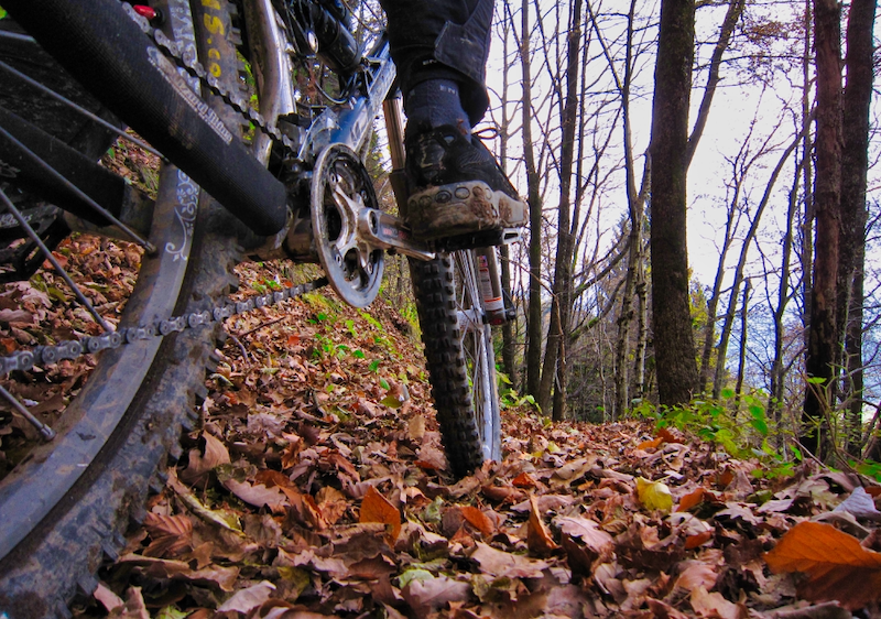 Il giro di planina Pretovč è così, una lunga salita di circa 10 km tutta su mulattiere e stradine forestali alquanto ripide e spesso faticose per il fondo mai compatto che attraversano boschi di rara bellezza, e per stradina forestale è da intendersi nel senso sloveno del termine, gozdna cesta, che non equivale alle nostre forestali larghe come autostrade! Qualche anno fa l’avevo percorsa nell’altro senso, scendendo dalla planina Sleme, adesso nella guida di Leon Leban Dolina Soče (edizioni Sidarta) è proposta come salita, segno dei tempi cambiati e dell’evoluzione delle attuali mtb allmountain capaci effettivamente di salire pedalando anche sui single track con pendenza non proibitiva. La discesa dalla planina Pretovč, più o meno di 7 km, è purtroppo solo in parte su single track, non difficile ma sempre su un fondo smosso di foglie e sassi, a cui segue una stradina forestale veloce e discretamente divertente. Arrivati all’auto la sensazione di aver compiuto un gran bel giro c’è comunque tutta, e in fondo non è questa la cosa che conta?