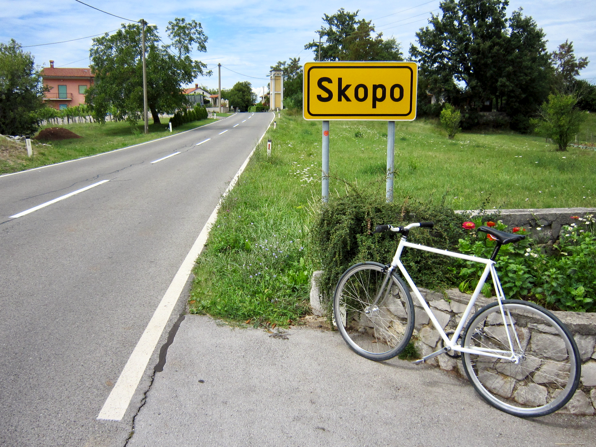 All’inizio partire da casa con un mini zainetto e questa bici così leggera sotto il sedere mi è sembrata una cosa veramente spiazzante, mi sembrava di essere SENZA QUALCOSA. La guida, poi, tutta particolare con quell’obbligo di PEDALARE SENZA SOSTA, pena un bel cappottamento in avanti, e SENZA CAMBIARE RAPPORTO, lo scivolare veloci e leggeri sull’asfalto che prima con le Minion voleva dire solo sofferenza: beh, in fatto di attività ludiche è stata la scoperta più bella dopo la mtb tanti anni fa, non sarà la bici adatta alle montagne, ma sui saliscendi del Friuli a ridosso delle Prealpi è uno spettacolo. E non solo per fare un giretto la sera, visto che oggi mi son fatto i miei primi 100 km con la fissa: ho preso la pioggia, calda ma sempre bagnata, sono dovuto scendere dopo 70 km su una salita di 4 km piuttosto ripida, sono arrivato davanti ad un bar chiuso per ferie quand’ero rimasto senz’acqua, però è stata una delle più belle giornate di bici della mia vita, non la dimenticherò tanto presto, come non dimenticherò il cartello indicante “Cividale 1 km” , a significare l’ultimo kilometro dei 103 di oggi!
