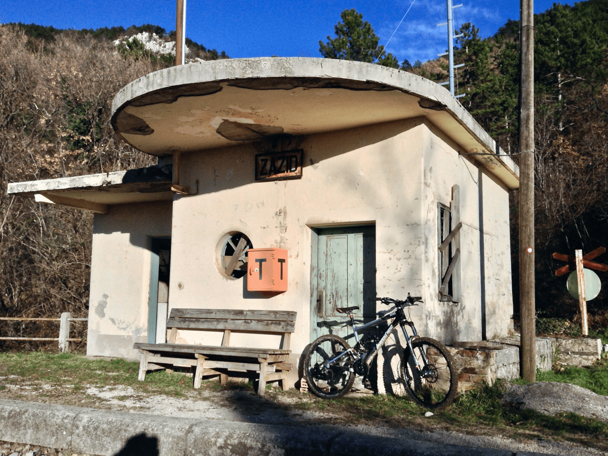 … però in un anno può capitare di cambiare prospettiva, stili  e abitudini di vita e, perché no, modi di intendere la mountainbike. Per quanto mi riguarda il mio interesse ciclistico, complice anche una vacanza per certi versi indimenticabile, si è spostato dalle Alpi al Carso, all’Istria e alla Dalmazia, terre basse dove  i sentieri hanno dislivelli non considerevoli, ma la luce del sole è più calda e avvolgente, il vino è più dolce e d’inverno l’aria è più mite, quasi un Nirvana ciclistico che voglio conoscere e frequentare sempre più spesso. Giusto ieri, riportata a nuova vita la “vecchia” Rune, versione 2.0, mi sono lasciato trasportare da questa voglia di girare un po’ a caso ai piedi del ciglione carsico nella valle di Hrastovlje, compiendo un giro ad anello di quasi 30 km circa e 800 metri di dislivello che detto così sembra niente, nella realtà è molto di più. Sarà che d’inverno mi piacciono i giri misti, asfalto, sterrato e mulattiera, ma questa per me è la gita invernale ideale, solare e positiva, un toccasana dopo due mesi di piogge e nuvole basse. E in giri simili non è detto che non ci sia del sano divertimento, la mulattiera rocciosa che scende dalle pendici meridionali del Lipnik alla vecchia stazione ferroviaria di Zazid è quanto di meglio si può trovare in Carso, alla pari con la dsicesa dello Slanik o del Nanos.
