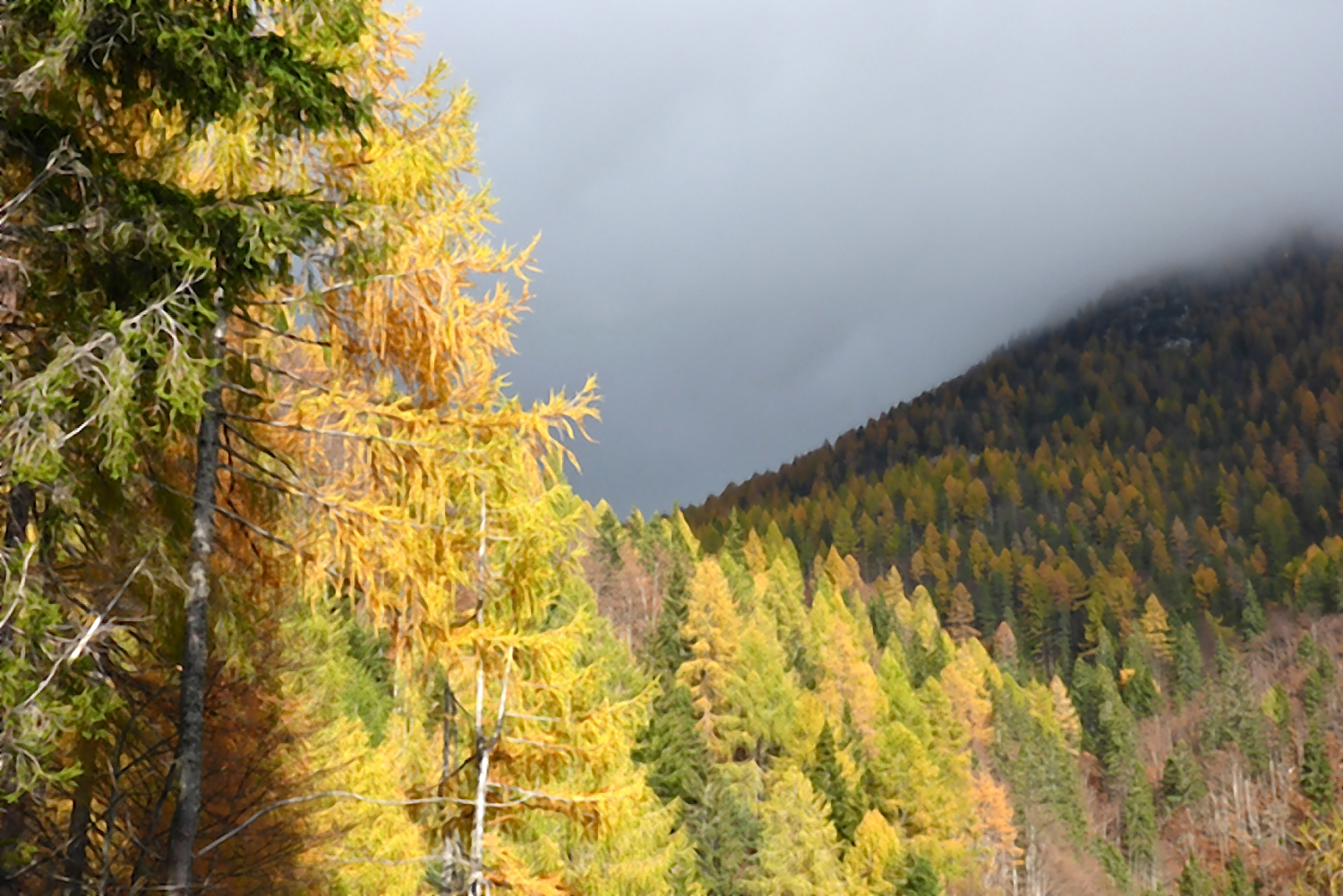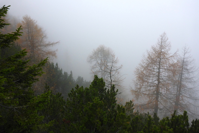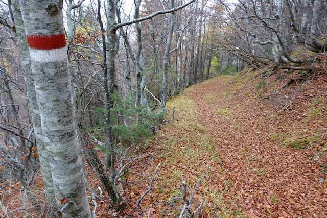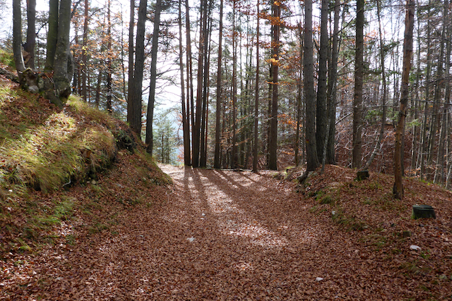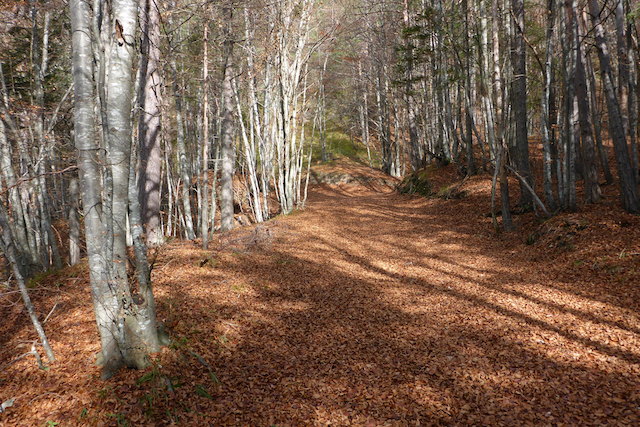 Questa in effetti si può considerare una gita per intenditori, la salita di 1000 metri precisi è a tratti veramente ripida, bisogna mettere in conto lo sbattimento del troj finding e la discesa è, come dire, un pò anacronistica, sono 800 metri per certi versi abbastanza monotoni di mulattiera militare ridotta a single track perfetto,questo sì, pure troppo, senza sponde, salti o altre amenità moderne, eppure rimane uno dei miei giri preferiti, da assaporare in autunno, con calma, quando i larici sono nella loro veste migliore e c’è poca gente in giro per i monti.