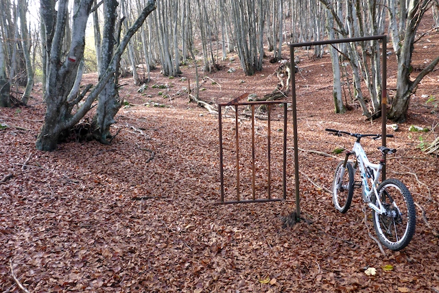 Sentiero: salitre a casera Rupeit per la sterrata del Monte Spia da Montereale Valcellina e arrivati al termine, 1000 metri di quota, proseguire bici a mano sul sentiero CAI (40′ a piedi). Scendere dalla casera dapprima sul sentiero MV02 segnalato da tabelle con segnavia giallo-blu, all’inizio con tornanti stretti su terreno ripido, a piedi viene anche meglio. Quando la pendenza lo consente in sella senza mai più scendere per 900 metri di dislivello fino al parcheggio, tenendo però come indicazione il segnavia CAI bianco-rosso del sentiero 987. Attenzione ai bivii, soprattutto l’ultimo nella parte bassa: c’è una brusca svolta a 90° poco evidente che ci regala l’ultima chicca del sentiero e sarebbe un peccato perderla.