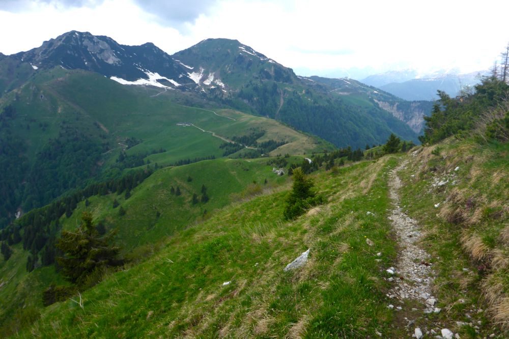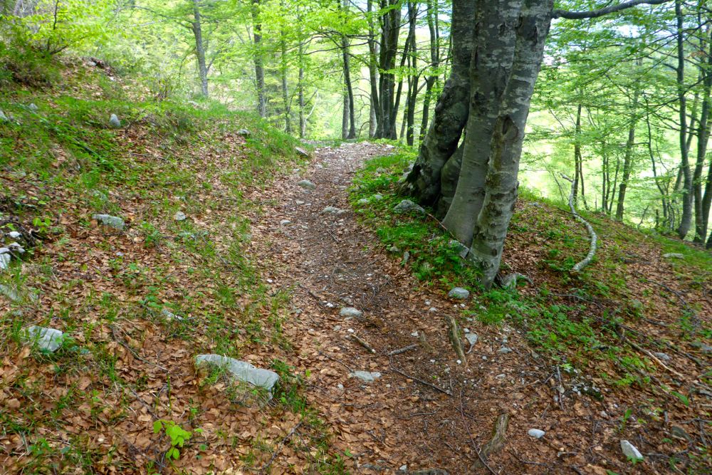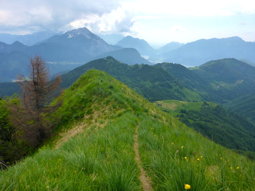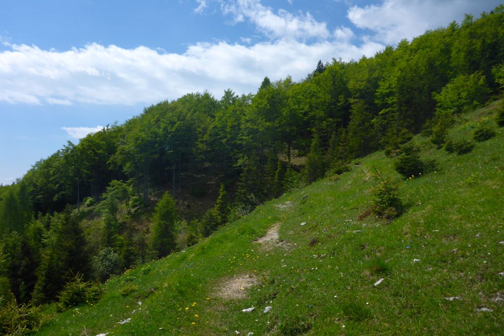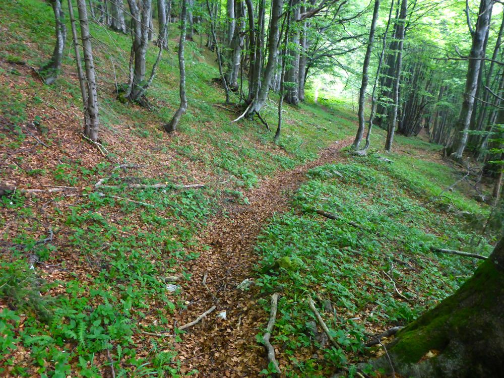 Partito da Caneva di Tolmezzo per l’asfalto, volendo su pista ciclabile a lato, fino a Zuglio e poi su a Fielis, ancora su per la terribile strada sterrata a Malga Dauda, pendenza max 33%, scendendo più volte a piedi quando i polmoni scoppiano. Alla malga bici a mano per il sentierino a sinistra, SW, tabella in legno illeggibile, che entra nel bosco e con percorso altamente panoramico porta alla Costa Navantes, il crestone erboso SE del Dauda. Arrivati allo spigolo del crestone, splendida vista sulle montagne tolmezzine, bisogna risalire ripidamente per 80 metri il faticoso sentiero segnato con bolli gialli fino ad arrivare ad una più comoda mulattiera che si segue in salita fin sotto la cima del Dauda ai 1700 metri di quota, punto più alto del percorso. Da qui a Villa Santina, tranne un breve tratto in contropendenza dopo Vinaio, è una bellissima picchiata di circa 20 km e 1400 metri, e pazienza se il troj vero e proprio è lungo solo 1 km, quel che conta è scendere in sella alla bici per una buona ora passando dal sentiero alla sterrata e ai 55 kmh della strada asfaltata di Lauco per fermarsi giusto alla fine, al segnale di stop in centro a Villa Santina.