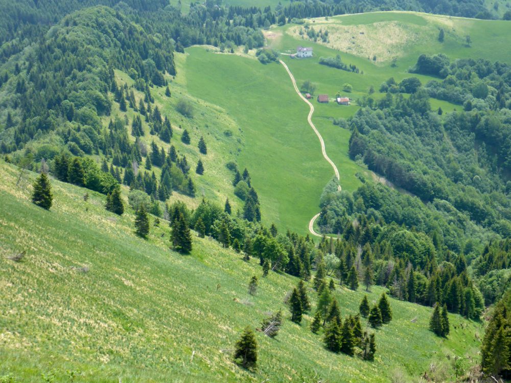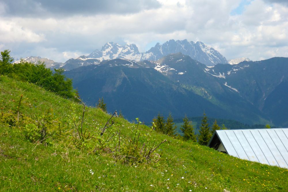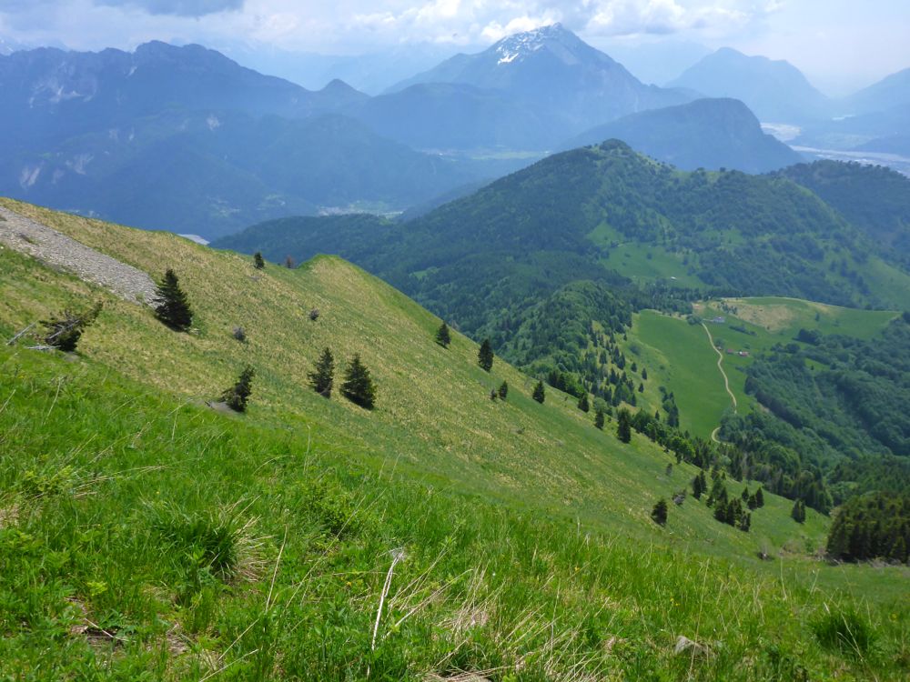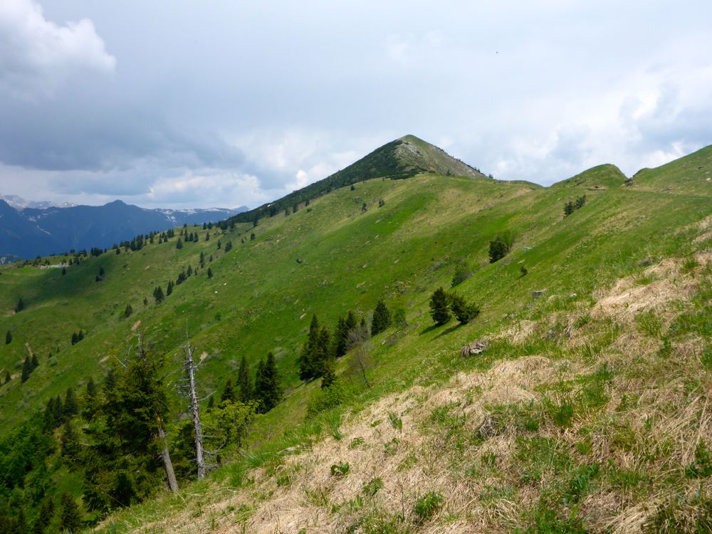 Partito da Caneva di Tolmezzo per l’asfalto, volendo su pista ciclabile a lato, fino a Zuglio e poi su a Fielis, ancora su per la terribile strada sterrata a Malga Dauda, pendenza max 33%, scendendo più volte a piedi quando i polmoni scoppiano. Alla malga bici a mano per il sentierino a sinistra, SW, tabella in legno illeggibile, che entra nel bosco e con percorso altamente panoramico porta alla Costa Navantes, il crestone erboso SE del Dauda. Arrivati allo spigolo del crestone, splendida vista sulle montagne tolmezzine, bisogna risalire ripidamente per 80 metri il faticoso sentiero segnato con bolli gialli fino ad arrivare ad una più comoda mulattiera che si segue in salita fin sotto la cima del Dauda ai 1700 metri di quota, punto più alto del percorso. Da qui a Villa Santina, tranne un breve tratto in contropendenza dopo Vinaio, è una bellissima picchiata di circa 20 km e 1400 metri, e pazienza se il troj vero e proprio è lungo solo 1 km, quel che conta è scendere in sella alla bici per una buona ora passando dal sentiero alla sterrata e ai 55 kmh della strada asfaltata di Lauco per fermarsi giusto alla fine, al segnale di stop in centro a Villa Santina.