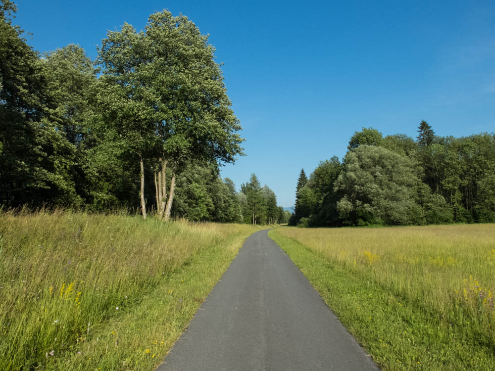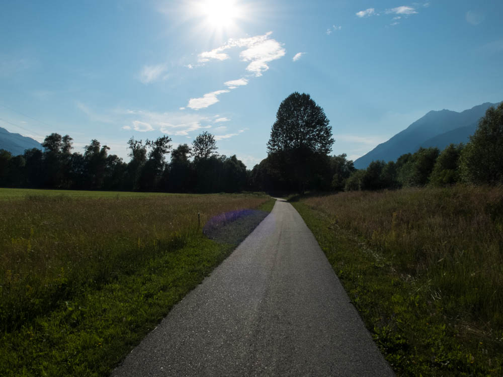 Solitamente la classica gita in mtb finisce così, arrivati a fondovalle via a bere birra e spanzarsi di speck e poi il ritorno a casa, MA, se la gita termina nella valle opposta la questione cambia, e cosa c’è di meglio di una sana sgambata di 50 km su piste ciclabili per tornare al punto di partenza, vuoi mettere la soddisfazione ?Scherzi a parte, quando la gamba gira che è un piacere una pedalata defatigante la sera d’estate lungo le rive del Gail può essere veramente piacevole. Vabbè, poi arrivato a Valbruna sul tracciato dell’ex ferrovia ho realizzato che di piste ciclabili ne avevo abbastanza e mi sono sparato gli ultimi km sulla S.S.13 alle ultime luci del giorno, un vero D-Day, ecchecazzo.
