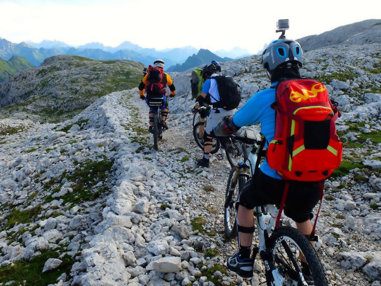 Avendo a disposizione quattro giornate da spendere per la mtb non c’è niente di meglio al mondo delle Dolomiti, senza paura di essere smentito. E se a Cortina d’Ampezzo i ridicoli divieti alle bici sui sentieri ci intristiscono allora noi si va in Trentino e in Alto Adige. Qui non solo la mtb è ammessa, ma ti portano con le funivie in quota così da non stancarti troppo e goderti le discese, e alla fine i numeri parlano da soli: 106 km, 2680 m di salite, 6500 m di discese… tanta roba!