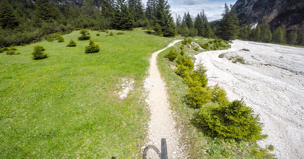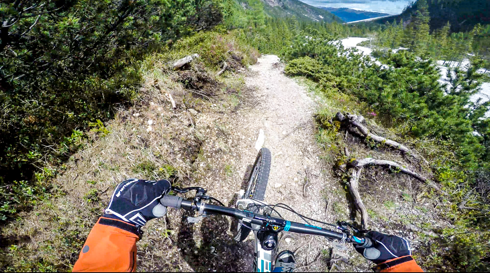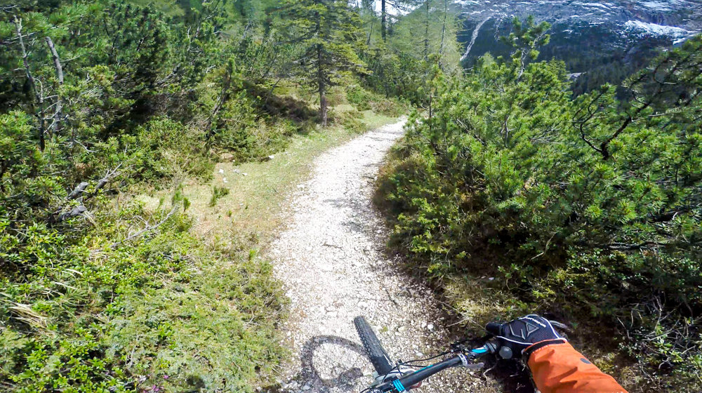 Sentieri così bisogna ovviamente affrontarli ad andatura controllata, no derapate e freeminkiate, non bisogna lasciare alcuna traccia del proprio passaggio e neanche spaventare la fauna, perché un conto è essere un pochetto abusivi, un conto è comportarsi da selvaggi quali in fondo non siamo, la full da 180 e le protezioni stavolta si lasciano a casa, basta una Yeti e il K2 Route, casco 2X1 omologato per sci e bici. 😉