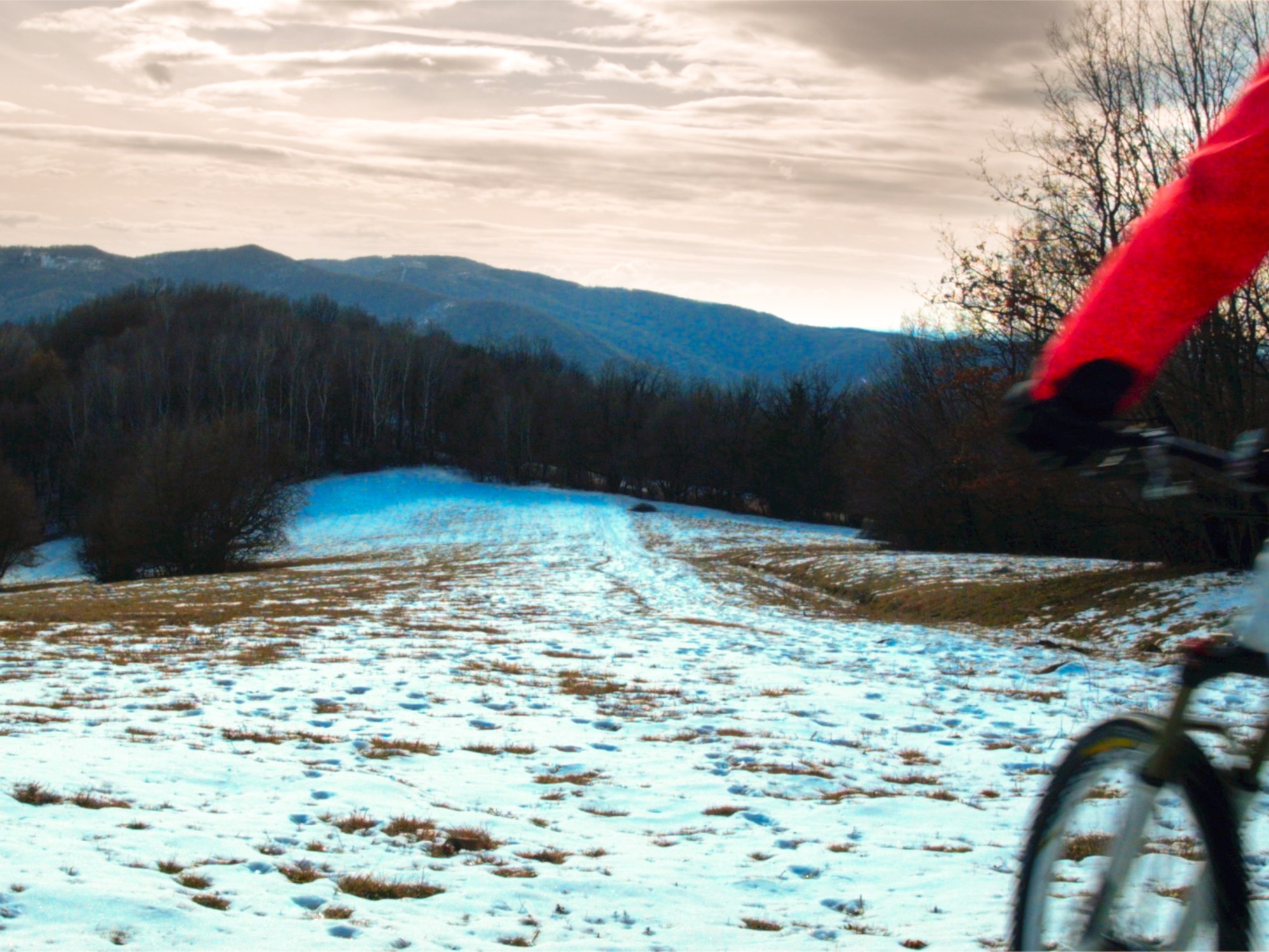 749, 747 e 761, la terna magica, quasi quasi li gioco al lotto. L’avevo fatto anni fa salendo al monte S. Martino e poi continuando fino a Clastra in un’ignobile giornata autunnale, una di quelle che hai solo voglia di finire il giro e tornartene a casa e non mi aveva per niente impressionato con tutti quei saliscendi e il viscidume in abbondanza, e invece eccolo qua dopo una modesta ma quanto mai provvidenziale nevicata che si presenta in tutto il suo splendore, anche, diciamolo, dal punto di vista fotografico che se no è tutto un inguardabile marrone e verde scuro. Il 761 segue in pratica la dorsale che sta nel mezzo tra quella del Matajur dove passa il sentiero 749 e quella del Colovrat percorsa dal sentiero 747, e gennaio con le sue giornate fredde e terse è forse il mese più adatto per girarci se c’è la neve giusta, non troppa ma neanche troppo poca: in tutto sono 12 km di sentiero se si parte da Topolò, si sale alla Bocchetta omonima, tabella d’inizio del vero e proprio 761, e si proseguesempre con bel sentiero fattibile anche se innevato in cima al monte S. Martino. Da qui la discesa a Clastra, con brevi saliscendi mai proibitivi, è lunga circa 9 km su troj bello e piuttosto facile (astenersi vertriders e freeriders, please) e per chi ha premura ci sono diverse possibilità di varianti più brevi senza doversi sobbarcarsi la salita bici a mano da Topolò, ma poi in fondo che saranno mai 450 metri di camminata, un’oretta a piedi in mezzo ai boschi fa solo che bene.