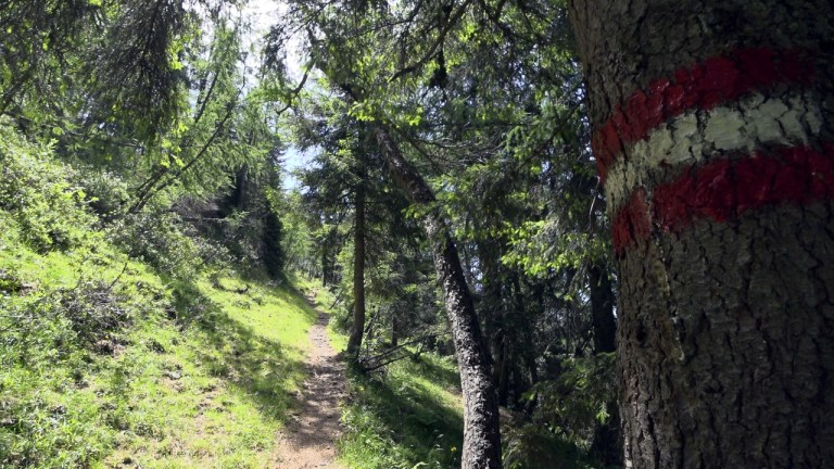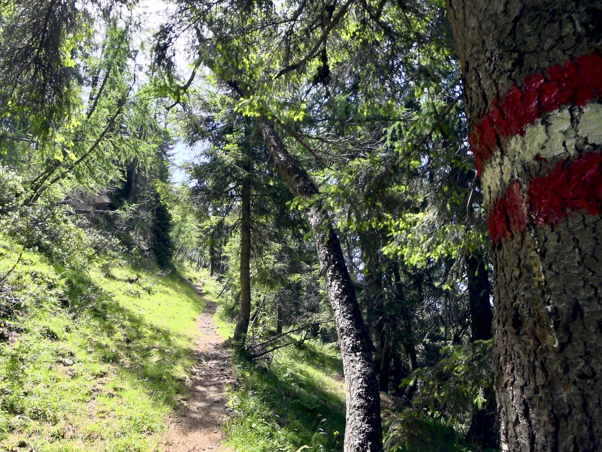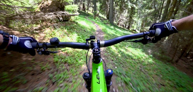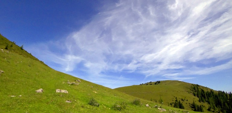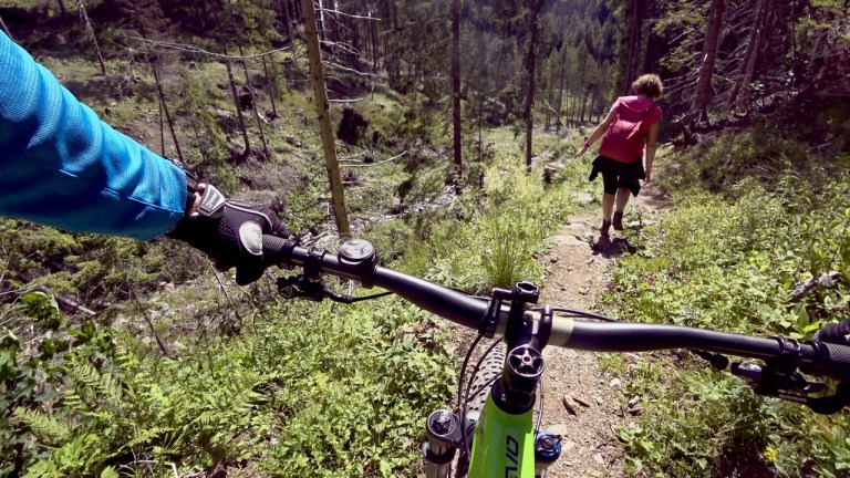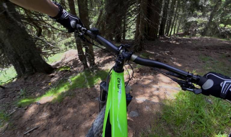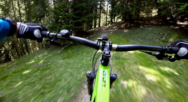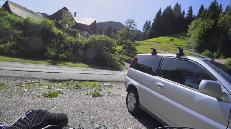 La Cima Bella è una classica dello sci alpinismo d’inverno, salirla con la ebike è una figata.Il largo crinale d’erba è tutto per me oggi.E’ bello arrivare in cima alla Cima Bella.L’alpeggio sul versante nord della montagna si raggiunge per un sentiero poco appariscente.Perché seguire la strada se c’è un bel troj più divertente?This is freeride.Noie meccaniche per un banale ramo fra i raggi: gabbia del cambio piegata di brutto.Si sale per il 403 all’ampia sella erbosa fra il Sagran e lo Starhand.Sul sentiero pedalando in salita, eh già, mica a piedi come una volta :).L’arrivo in sella sotto un sole cattivissimo.Il sentiero 403 s’infila nel bosco.Me lo ricordavo bello ed è rimasto abbastanza ben conservato dopo un inizio un po’ scavato.E molla quei freniii…Fine della seconda discesa alla Sella di Lom.La traversata del versante nord dell’Osternig è stata da mal di testa: ad un certo punto la forestale termina con questa bella catasta di alberi tagliati, di là c’è una misera traccia di sentiero che finisce nel niente. Anche il sentiero 477 è da evitare, forse, col senno di poi e cartine più aggiornate della Tabacco, bisognava stare più bassi su un’altra strada forestale.Arrivato in qualche modo a Sella Bistrizza non mi resta che farmi una birra e uno strudel, sì perché ho fatto gli ultimi 150 metri di dislivello a piedi senza più batteria dopo tutto il Turbo di oggi 😦 .Per fortuna che mi attende una discesa da antologia, mulattiera rettilinea con radici superasciutte da fare tutta d’un fiato.Si entra nel bosco…… e si molla tutto!Peccato rallentare per i pedoni, si scherza, eh!!!La ragazza mi aspetta a metà tornante, scelta discutibile…… mi precede per un tratto…… per poi decidere di fermarsi, grazie signorina!Il lungo tratto di sterrata fino all’Osteria Al Camoscio è molto frequentato.Finita! 3 salite, 3 discese, 1500 metri di dislivello in 27 km ravani compresi, in ogni caso un grande giro.