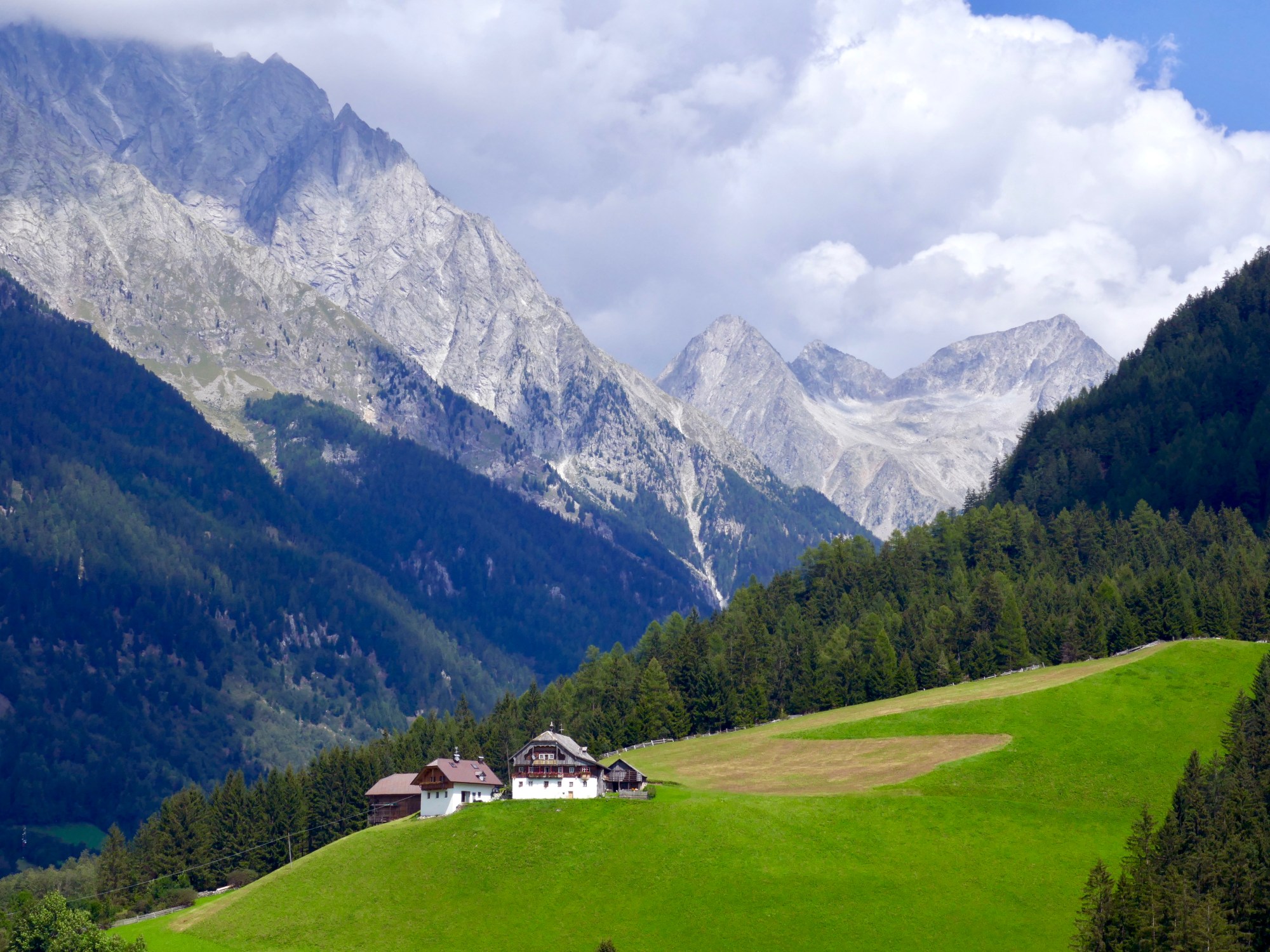 Giro dell’anno n.2, ma solo in senso cronologico. Agosto per me ha sempre voluto dire mtb in Dolomiti o Alto Adige per tutta una serie di motivi, là ho fatto i primi giri epici nel pieno dell’estate con bici oggi improponibili, fa caldo anche in quota e non serve portarsi pile o giacche pesanti, i sentieri (del vicino) sono sempre più verdi, le discese durano una vita, non mi viene in mente altro ma penso basti. Questa forcella, Scharte in tedesco sta a dire Forcella, a 2638 metri fra la Val di Casies e la Valle di Anterselva l’avevo già fatta sei anni fa nell’altro senso e mi aveva abbastanza deluso, e stancato, per la discesa dal versante Nord a quello Sud poco divertente, ambiente sì spettacolare ma mulattiera troppo scassata e troppo corta e a seguire chilometri di noiosa strada forestale, mi sembrava meglio il sentiero della salita fatta da Passo Stalle e quale migliore occasione adesso che c’ho l’ebike per verificare questa mia teoria? Obbligatoria la seconda batteria nello zaino visto che l’andatura sarà Trail di default su tutto il percorso parto da Monguelfo alle 8 e un quarto di venerdì mattina illudendomi di evitare la ressa d’agosto, si vabbe’, già a riempire la borraccia alla fontana della piazza devo fare la coda. Pista ciclabile della Val di Casies ad andatura sostenuta per salire rapidamente in quota e quando supero al triplo della velocità due biker traditional mi vergogno anche un po’. Prima di S.Martino prendo una forestale in stile tipicamente altoatesino dalla pendenza impressionante tanto che devo piegarmi in avanti sennò m’impenno ma in questo modo taglio il percorso e sono già nella Karbacher Tal e arrivato ai 2000 metri all’ultima malga della valle la prima batteria è andata, 1000 metri e 20 km belli tirati l’hanno schiattata, adesso mancano 600 metri alla forcella ma non so quanti siano effettivamente pedalabili. Diciamo che per metà lo sono, o quasi, per metà è invece il più classico dello scendi e spingi, nello stupendo vallone che pare Glencoe ci siamo solo io e le marmotte fischianti e non mi accorgo neanche che sto spingendo come un cretino 22 kg di metallo su per una mulattiera a 2500 metri di quota. Alla Hexenscharte posso finalmente risalire in sella, pensare che in Friuli a questa quota c’è la cima dello Jof Fuart fa una certa impressione, accendo la GoPro in modalità Time Lapse e via giù mentre in alto dei bei nuvoloni neri sopra la Valle di Anterselva illuminata dal sole farebbero la gioia di ogni fotografo. La discesa dalla Hexenscharte fino al lago di Anterselva si può riassumere con il motto “Più scendi più godi”, la prima parte è tipicamente d’ambiente su larga mulattiera lastricata che ti lascia il tempo di goderti il paesaggio, prima del Passo Stalle si fa piacevolmente rocky e dal passo in giù il sentiero taglia la strada con veloci rettilinei nel bosco e facili tornantini che lasciano il posto man mano che si scende ad una serie impressionante di dossi e curve a “S” veloci e divertentissime, peccato per il cartello di divieto alle bici che s’incontra qua e là, ma che sarà mai, l’importante è scegliere sempre il segnavia n.11 dritto davanti a noi. Avvertenza: arrivare al lago senza un sorriso stampato in faccia è molto, molto difficile, facile è invece rendersi conto di essere stati catapultati di colpo in una classica località ipermegaturistica da dove in quanto unico biker fra tutti i Turisten mi conviene subito levare le tende, la birra può aspettare. E sì perché non è mica finita: il sentiero 11 continua a lungo a destra della strada per svariati km fra boschetti e prati verdissimi e solo ad Anterselva di sopra devio per l’asfalto che la gomma dietro si sta ammosciando per una pizzicata sui dossi rocciosi prima del lago, tanto da domani latticizzo.