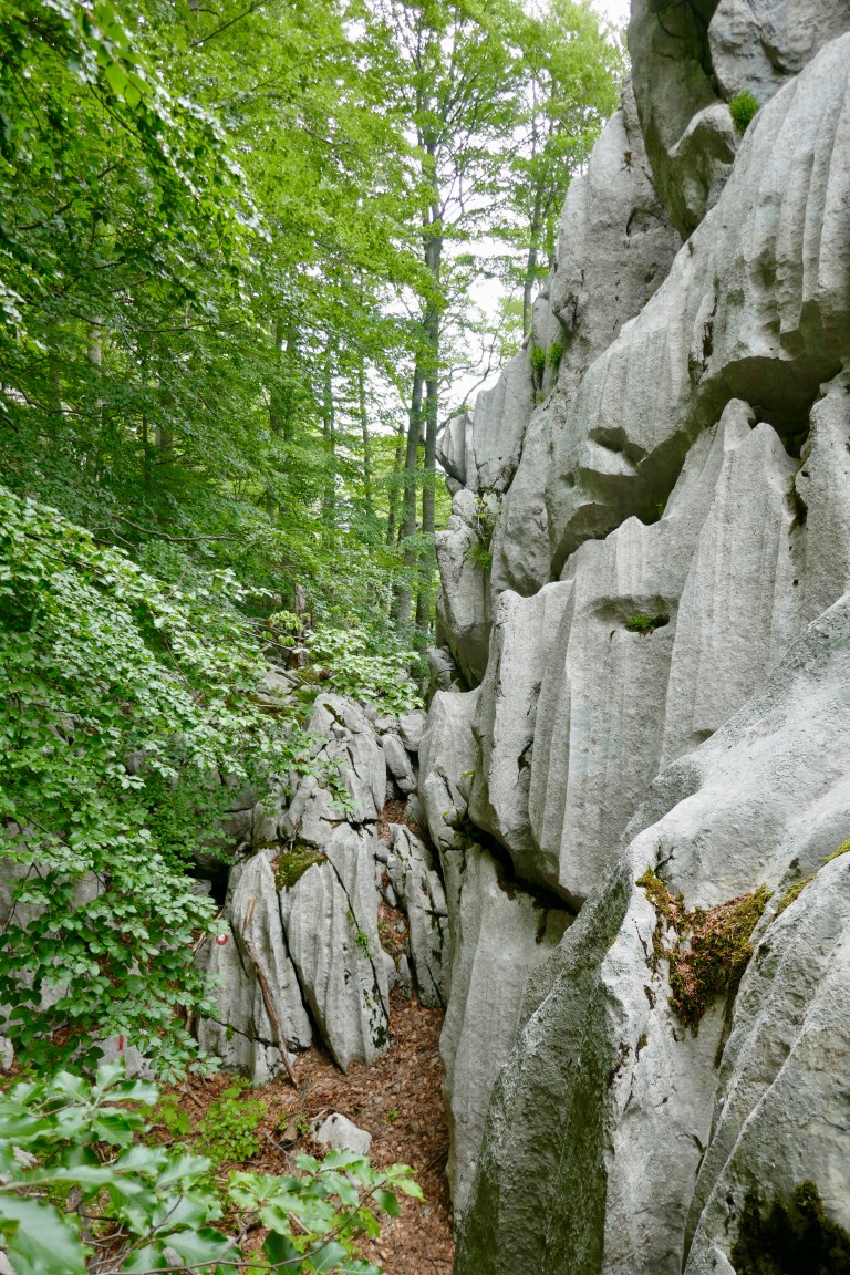 Se inizi una traversata alpina di 100 km con la prima metà di una bellezza sconvolgente t’immagini che possa essere tutta così, ma non hai fatto bene i conti con il signor Velebit, magari se non hai trovato informazioni dettagliate sulle tappe successive o qualche video esplicativo sul tubo un motivo ci sarà. Il terzo giorno partiamo baldanzosi da Baške Oštarije su a piedi lungo una piscina da sci (!) dismessa con tanto di ski-lift arrugginito, seguiamo i bolli del Velebitski Planinarskj Put, VPP per gli amici, che secondo i nostri calcoli ci dovrebbe portare alla Tatekova koliba, un bel casolare nella valletta di Stap in circa 10 ore “ma in bici stiamo di meno”.