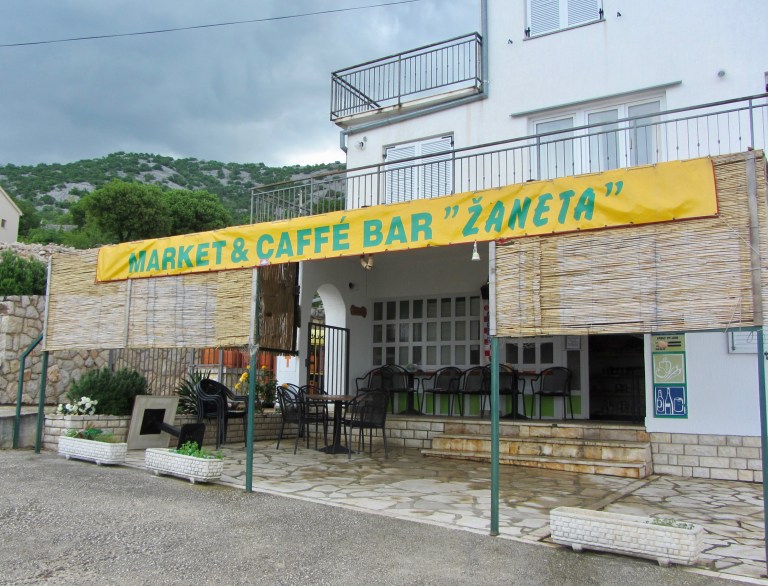 Dopo 20 km deliranti arriviamo a Lukovo Šugarje sulla strada costiera disfatti dal caldo e dalla sete, mi devo distendere all’ombra di una casa non abitata per mezz’oretta, l’insolazione fa brutti scherzi e mi sa che la mia crema solare da troppo tempo nello zaino è anche scaduta e non è servita a un caxxo, mentre Stefano più fresco di me, e chi l’ammazza questo, chiede informazioni sulla più vicina konoba/market/qualsiasi posto che venda birre fresche. “Sono solo 8 km al market più vicino”, cosa dovrebbe essere un incoraggiamento? Ma come si fa, un paese senza un bar, se fosse in Friuli ce ne sarebbero tre. Mi riprendo un po’ e senza emettere alcun suono che la gola è troppo secca inforco la bike e seguo Stefano bello pimpante sui pedali neanche fosse appena partito. Il bello della fat bike che nonostante le ruote larghe su asfalto se spinta ad una velocità costante va che è una meraviglia, non lo credevo neanch’io. Siamo finalmente al benedetto mini market/bar ma è chiuso, arriva un signore del posto che deve comprarsi l’aranciata, telefona al proprietario (c’è il numero sulla porta del negozietto) ed in un baleno da una casa vicina arriva la ragazza ad aprire, roba che solo qui in Croazia, e ci ritroviamo dopo 5 minuti seduti sulla panchina all’ombra con in mano due birre ghiacciate e pure le patatine, salvi!!!