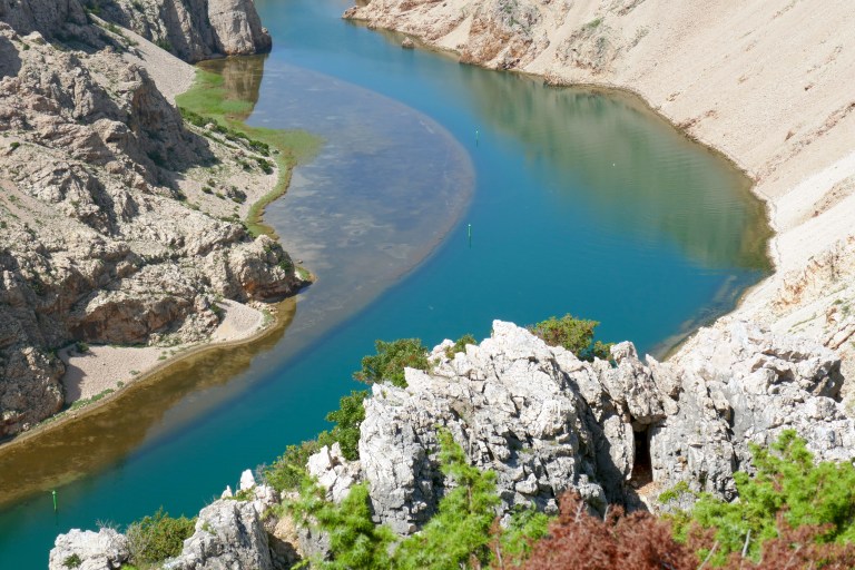 Il Velebit è ormai alle spalle, abbiamo deciso di rilassarci e fare un po’ di sano cicloturismo che da queste parti ha le sue attrattive. Innanzitutto vogliamo vedere questo famoso canyon del fiume Zmanja, sono giusto 50 anni che su queste rive hanno girato Winnetou la Valle della Morte un western italo-tedesco-yugoslavo che non ho mai visto ma che a questo punto mi piacerebbe cercare, a Starigrad ci sono i manifesti per la ricorrenza del 50°, ma quando arriviamo sul posto nessuna traccia del pueblo dove sono state le riprese, il canyon ovviamente c’è ancora ed è fantastico.