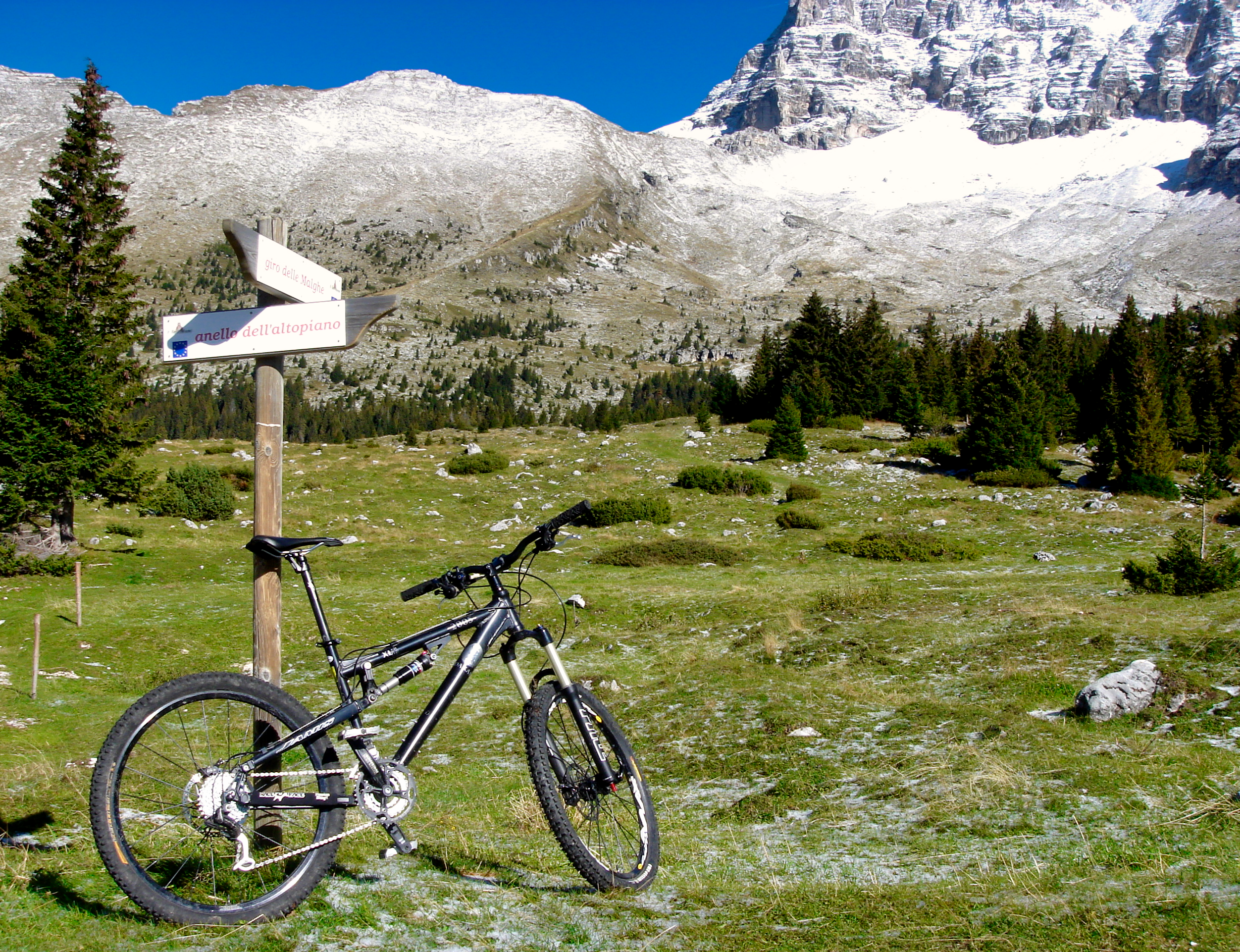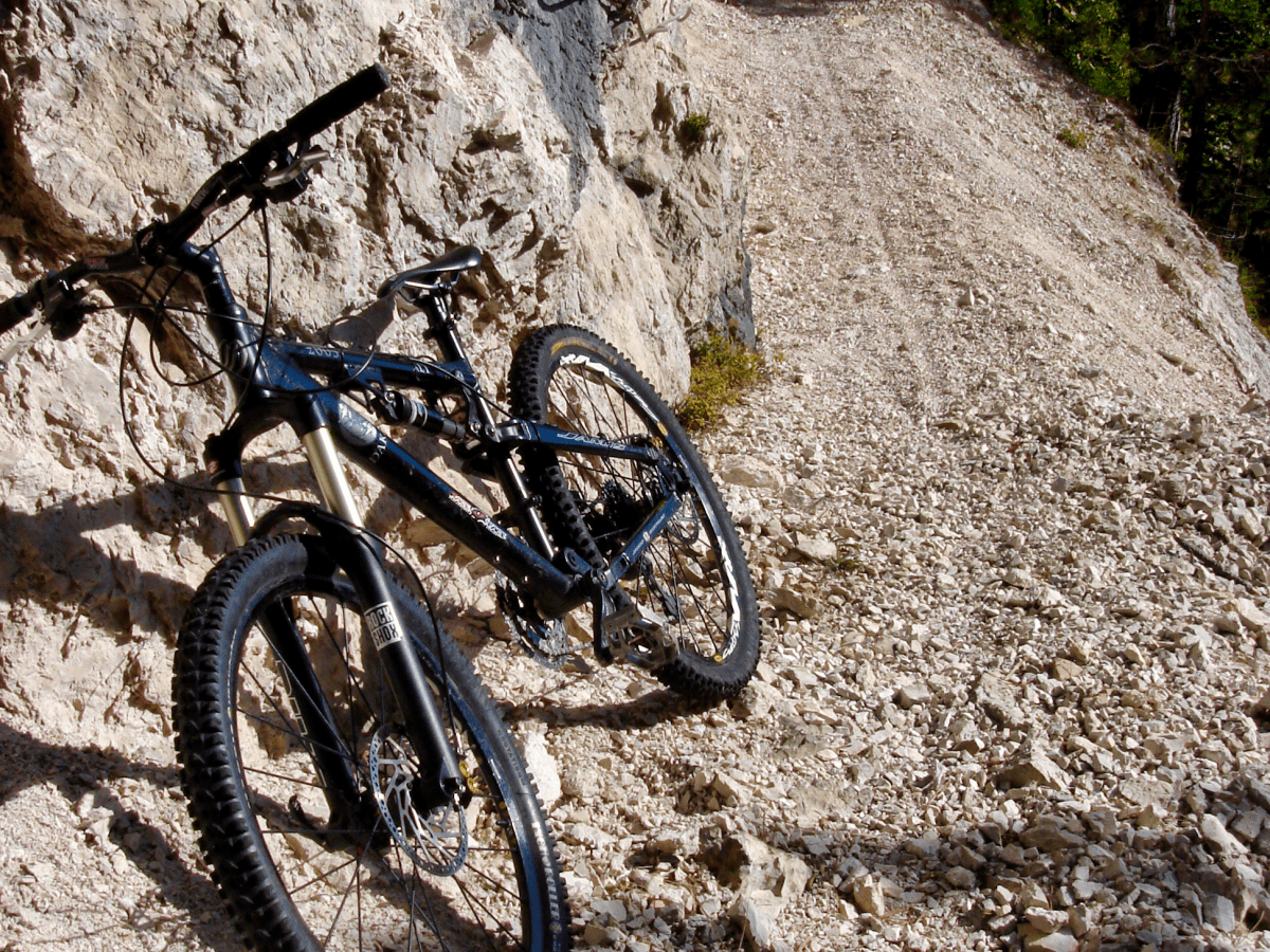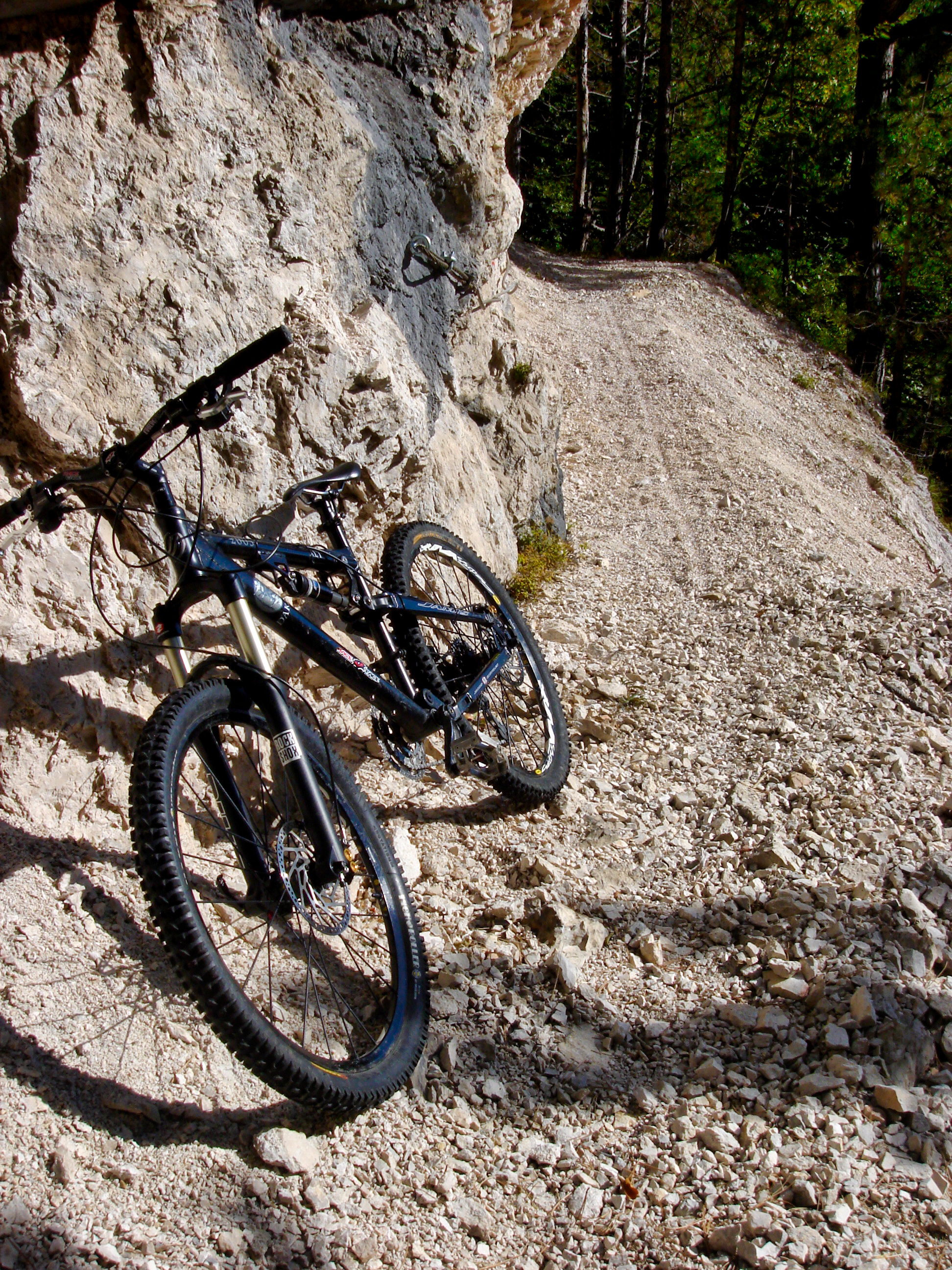 Sempre in tema di epic trail d’annata eccone un altro e sempre in Val Raccolana che più All Mountain non si può, la traversata dai Piani del Montasio a Patoc sullo spettacolare e lunghissimo sentiero 621 con gran finale sul bellissimo 620 che scende a Chiusaforte. Diciamo subito che anche questo percorso esula qualcosina dai classici giri di mtb, si pedala ma ogni tanto tocca scendere dalla bici, ma non è detto, io l’ho fatto una volta nel 2007 e chissà in che condizioni potrà essere quest’anno. Partendo da Chiusaforte sono quasi 45 km, c’è da spippolarsi tutta la strada di Sella Nevea e a seguire la stradina per i Piani, divertimento assicurato per svariate mezze ore, dopodiché alle casere Pecol, adesso Agriturismo Malga Montasio, inizia la traversata vera e propria su un sentiero sempre spettacolare per le visioni che ci regala e a tratti letteralmente scavato nella roccia, qualche passaggio esposto ma fattibile con attenzione, non sembra finire mai quindi è bene partire all’alba per non far notte, pazzesco il senso d’isolamento unico e irripetibile sulle nostre alpi, alla fine della lunga giornata è un’esperienza che ti cambia la vita di biker, ci sarà un prima e un dopo Piani-Patoc, garantito.