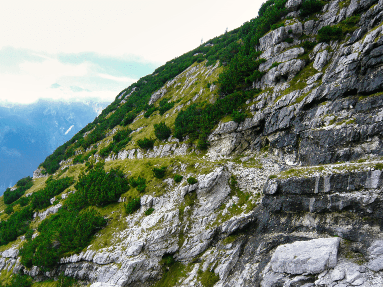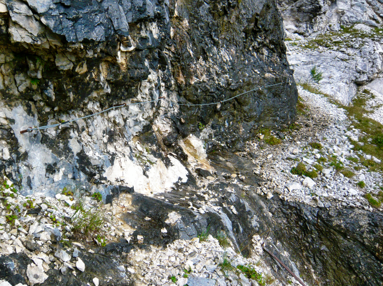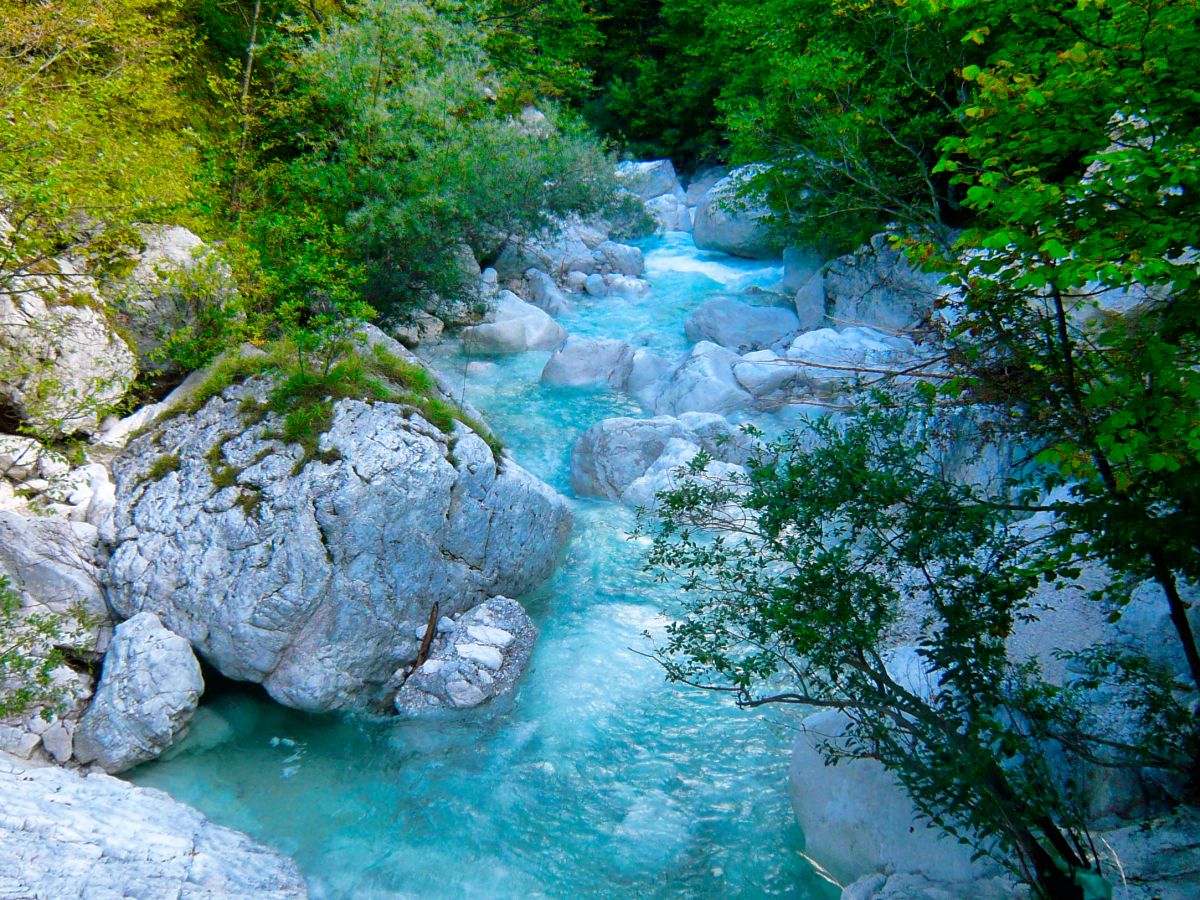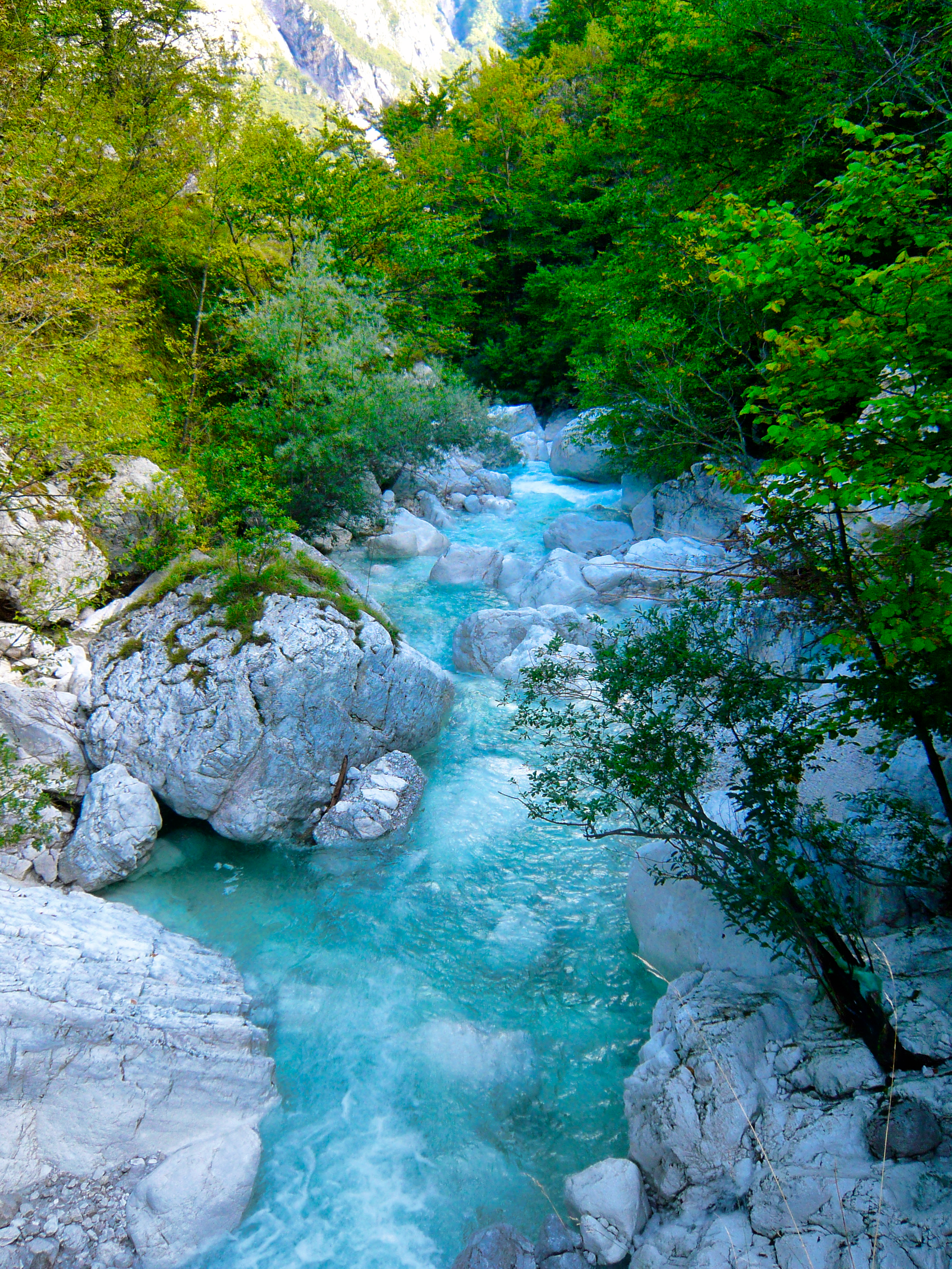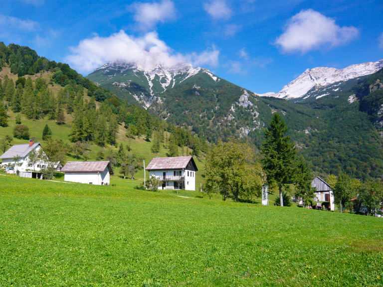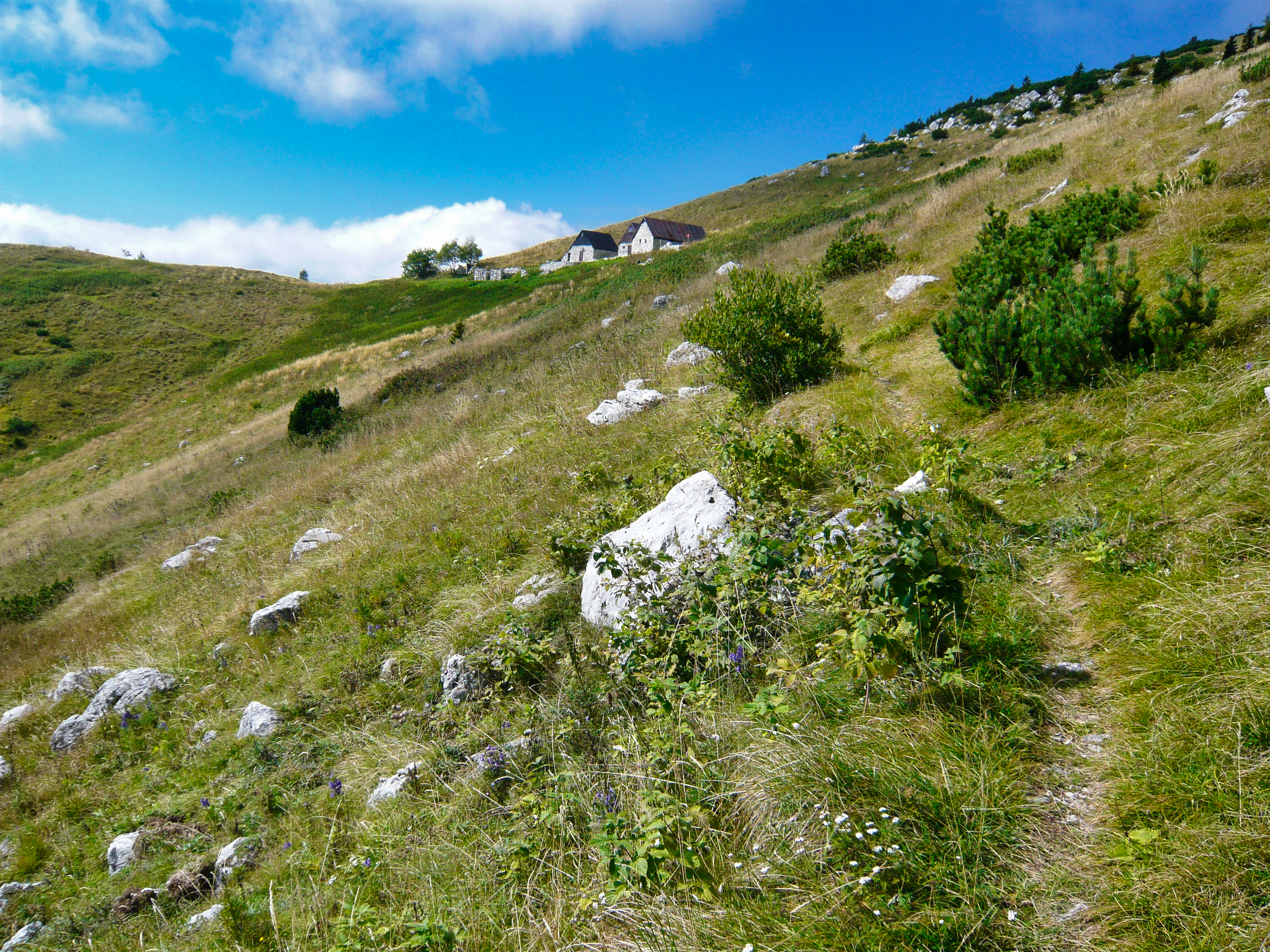 Nell’estate del 2006 mi venne la smania dei sentieri sloveni che ad eccezione dello Slavnik erano a me del tutto sconosciuti, e fu una vera impresa la ricerca di informazioni sul web al riguardo, alla fine l’unica fonte attendibile era il sito mtbture ad uso esclusivo dei madrelingua, e hai voglia a comprare un dizionario sloveno-italiano o usare il traduttore di google, metà dei termini usati per noi impronunciabili avevano e hanno tuttora significati decisamente oscuri. In particolare non avevo mai sentito parlare della mulattiera di guerra che da Tolmino saliva al Krn/Monte Nero costruita dagli austriaci per rifornire il loro campo base ai piedi della Batognica ma le foto anche se di bassa qualità mi incuriosirono al punto da tentare un’incursione “behind the enemy lines” per raccogliere informazioni di prima mano. Con la fotocopia di una approssimativa mappa della zona in tasca parto una mattina di giugno ad ore impossibili per sfuggire ai temuti controlli, lascio l’auto a Tolmino e inizio la salita per il bellissimo alpeggio delle Tolminske Raune, continuo nel bosco in direzione Rifugio Planina Razor dove non mi azzardo ad avvicinarmi e m’infilo letteralmente fra due giganteschi massi che segnano l’inizio di quella che per me sarà sempre “LA Mulatjera”, percorso unico nel suo genere, una cengetta strappata alla roccia a picco sulla valle dove Storia e Natura si danno la mano per kilometri e kilometri, una vera Macchina del Tempo per rivivere un’esperienza di cento anni fa, strano riuscire ancora oggi a passarci abbastanza comodamente in mtb divertendosi pure. Dopo circa 7-8 km di traversata in saliscendi si inizia a scendere per facile e bel sentiero alla Planina Dobreniščica usata dai cacciatori locali che sembra non gradiscano per niente i biker di passaggio, meglio controllare da distanza e approfittare, come ho fatto realmente io, di una loro distrazione per passare di soppiatto, non si sa mai. Da qui ci sarebbero due possibilità : continuare con un tratto in salita fino alla testata della valle e scendere a sinistra a delle casermette diroccate (Prehodci) ed a una mulattiera quasi abbandonata in direzione sud nella solitaria Valle del Tolmino, oppure, consigliabile, si gira subito a sinistra per prati sulla traccia che diventa sentiero sassoso e abbastanza tecnico a tornanti nel bosco fino a oltrepassare un ponticello in pietra, siamo alle sorgenti del Tolmino e possiamo concederci un sorso d’acqua freschissima all’ombra dei faggi. A sinistra del ponte si prende un sentierino che costeggia il torrente e in breve si è sul bel prato davanti ad una curiosa casetta nel bosco, la planina Pod Osojnico, bisogna attraversare il terreno recintato della malga e si continua sulla larga mulattiera che con una breve salita arriva ad una selletta con cancello. I single track sono ormai alle nostre spalle, ci aspetta una discesa a Tolmino piuttosto lunga e tutta all’ombra all’inizio su sterrata ghiaiosa, poi lastricata e veloce, infine larga e asfaltata, aperta al traffico e con qualche tratto in contropendenza. Per concludere in bellezza, arrivati alle prime case in località Ralne, praticamente dove si ha l’impressione di essere finalmente tornati alla luce dopo tanta oscurità, prendere il sentiero subito a sinistra (tabella) che porta allle gole del Tolmino, Tolminka korita, e godersi così ancora 150 metri di bel sentiero nel bosco fitto e venire scodellati direttamente davanti alla biglietteria delle gole. Girando a destra sulla stradina asfaltata, dopo neanche 100 metri prendere a sinistra la mulattiera che attraversa i campi e arriva ad un cimitero di guerra austriaco, da dove non resta che seguire dritti la strada asfaltata per il centro di Tolmino. Superfluo aggiungere che se non ti fermi a bere una veliko pivo alla fine di questo memorabile giro non hai ancora capito niente dello spirito della mountain bike.