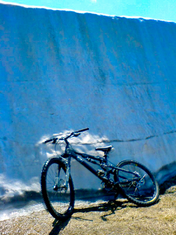 Se confronto l’attrezzatura fotografica che mi porto ultimamente nello zaino, fra mirrorless, obiettivi, drone e gopro almeno 4 kg, e quella che avevo la mia prima volta sul Vajnež, un Sony Ericsson K750, il massimo dell’hightech dell’epoca per soli 100 grammi di peso, beh, di sicuro le foto erano penose, (quelle scattate in cima perse per mia ignoranza durante un aggiornamento del mac…) ma facevo molta meno fatica e per un giro di 1800 metri di dislivello il micro zainetto andava alla grande. Itinerario di grande bellezza per la varietà del terreno , i panorami a 360°, le discese rupestri e l’orientamento complicato che richiede una buona dose di adattabilità e decisione, alla partenza ero realmente preoccupato al punto da avere fotocopiato qualche foto in bianco e nero scaricata dal web e scattata nel punto d’imbocco della discesa di non facile individuazione, ma poi tutto si è risolto nel migliore dei modi, anzi, alla fine è stato entusiasmante. Nei 30 km di giro sono stati tanti i settori di single track memorabili, eccezionale il passaggio fra due muri di neve in stile Stelvio in un unico tratto dove il sentiero tagliava letteralmente in due i resti di una slavina gigantesca.