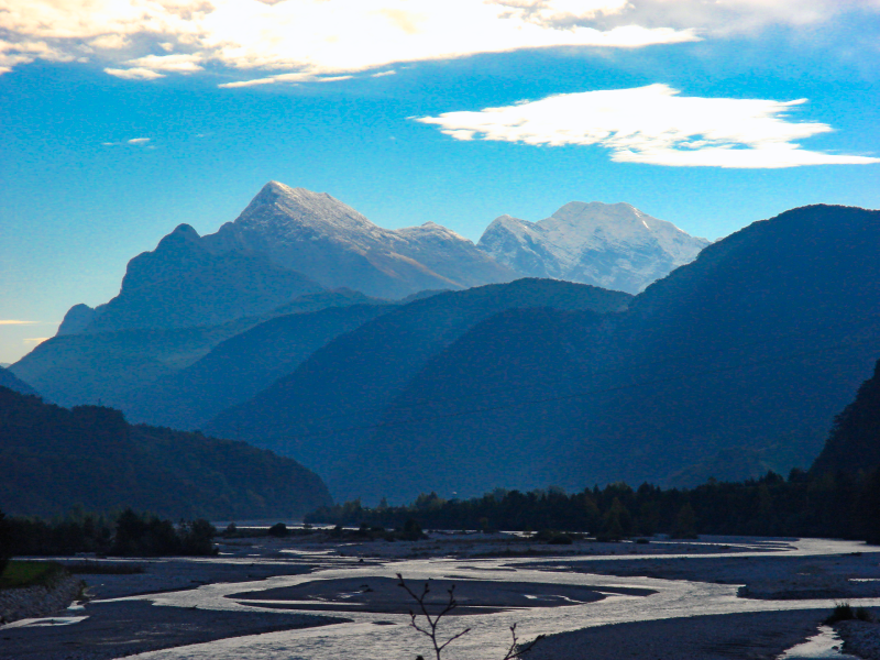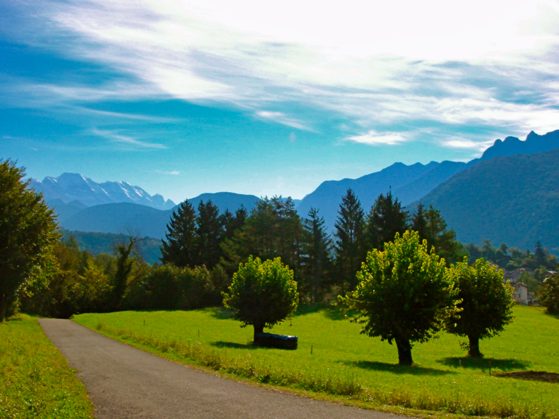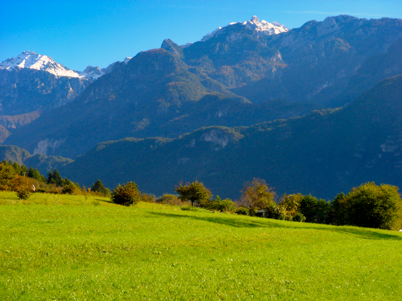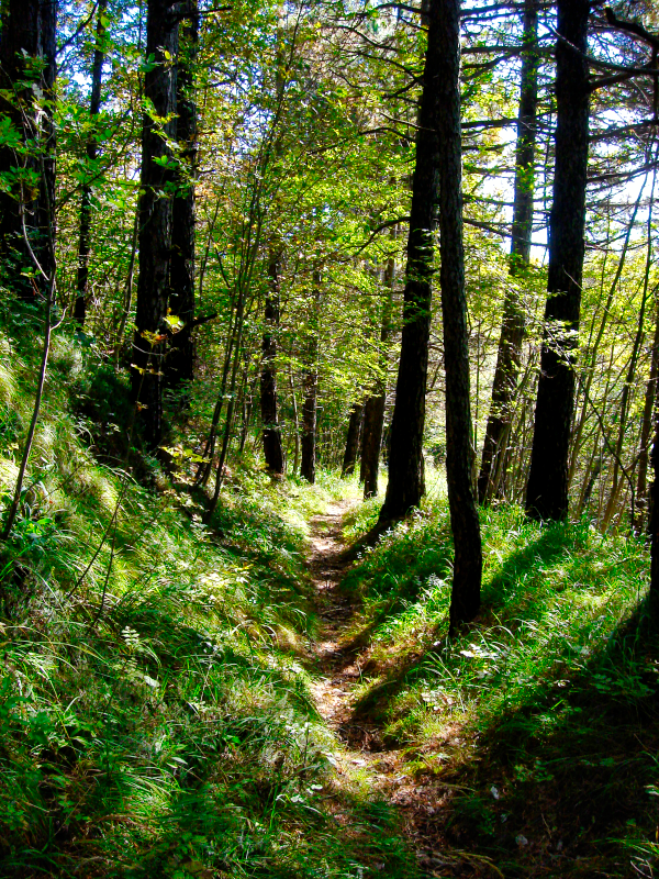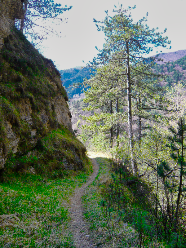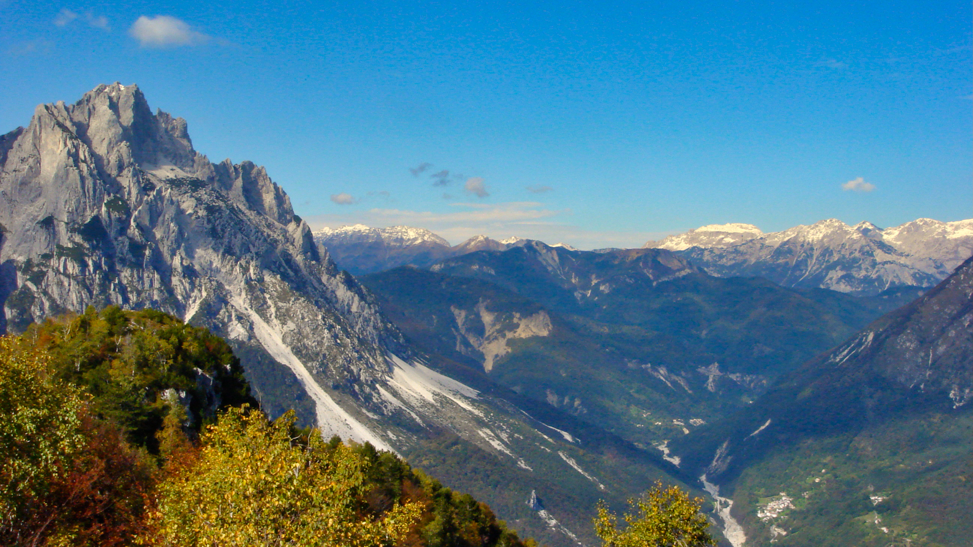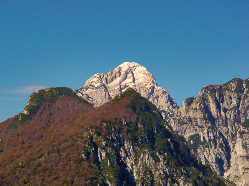 C’è sempre stata una gita che per me segnava l’inizio della stagione estiva a fine aprile o inizio maggio ed in un certo senso la chiudeva a cavallo dei mesi di settembre ed ottobre, il Monticello o Montusel come piace ai locali, una cima isolata di soli 1360 metri sopra Moggio e la Val Aupa con una vista superlativa a 360° che ne fa una meta frequentatissima dagli escursionisti. La prima volta ci sono venuto a camminare con due amici e lungo il sentiero di salita c’era questo telaio arrugginito di bicicletta lasciato lì da qualche buontempone, mancava la Fatina Bionda di quel famoso video pubblicitario per trasformarla in una moderna e-bike, certo che scassandomi le ginocchia sul sentiero di discesa mi ero ripromesso di tornare con la mtb. Ho dovuto aspettare una decina di anni ma ne è valsa la pena, bello sia salire dal paese di Grauzaria e le minuscole frazioni di Badiuz e Borgo di Mezzo che da sud dal Borgo Travasans sopra Moggio Alto, più pedalabile la prima, dopodichè dalla forca con la cappelletta non si fa altro che seguire la stupenda mulattiera militare a pendenza costante, segnavia 421, che porta a pochi metri sotto la cima, non ricordo altre gite con un avvicinamento simile, poco distante dalla pianura ma in ambiente prettamente alpino. La discesa sull’altro versante sempre contrassegnata dal segnavia 421 è oggi un must fra i freerider friulani, ho letto di uno che è sceso un po’ troppo allegramente e su uno dei ripidissimi tornanti della parte alta è finito sul bordo del precipizio e salvato dal Soccorso Alpino, è un tratto che andrebbe affrontato con una certa attenzione anche se non sono necessari i leziosi nose press tanto di moda oggi, quelli lasciamoli ad Hans Rey, mio idolo assoluto. Qualche anno dopo qui ho girato uno dei miei primi video con l’antenata della gopro per gli attuali standard di infima qualità da me intitolato un po’ immodestamente Full Monti, uno dei miei primi post in questo blog se ricordo bene, visto adesso è inguardabile ma dà l’idea della ripidezza del sentiero, vero Alessandro?