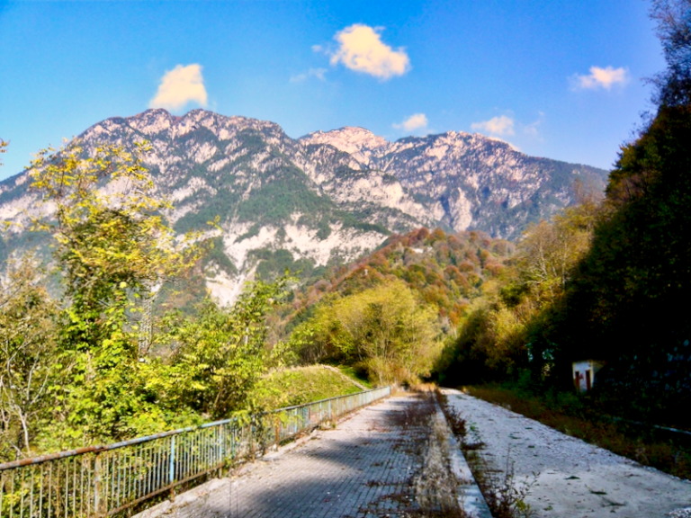 Bella gita autunnale o primaverile di soli 450 metri di dislivello alla scoperta di un caratteristico borgo di quattro case in tutto appollaiate su un balcone panoramico del Canal del Ferro con una divertente discesa a tornanti lastricati, volendo abbinabile al giro di Patoc, sentiero 620, con partenza da Chiusaforte. Le foto si riferiscono all’ottobre 2008, magari adesso ci sarà pure l’agriturismo b&b, campo da tennis, parco giochi per bambini, chissà. Interessante al tempo pedalare sulla sede dell’ex ferrovia oggi ciclabile Alpe Adria con doverosa visita alla biglietteria.