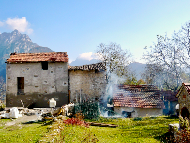 Bella gita autunnale o primaverile di soli 450 metri di dislivello alla scoperta di un caratteristico borgo di quattro case in tutto appollaiate su un balcone panoramico del Canal del Ferro con una divertente discesa a tornanti lastricati, volendo abbinabile al giro di Patoc, sentiero 620, con partenza da Chiusaforte. Le foto si riferiscono all’ottobre 2008, magari adesso ci sarà pure l’agriturismo b&b, campo da tennis, parco giochi per bambini, chissà. Interessante al tempo pedalare sulla sede dell’ex ferrovia oggi ciclabile Alpe Adria con doverosa visita alla biglietteria.