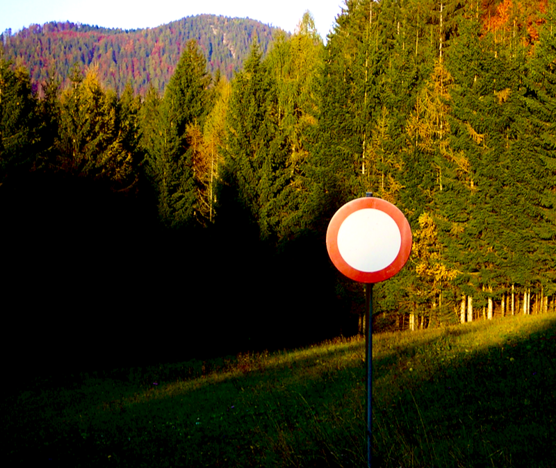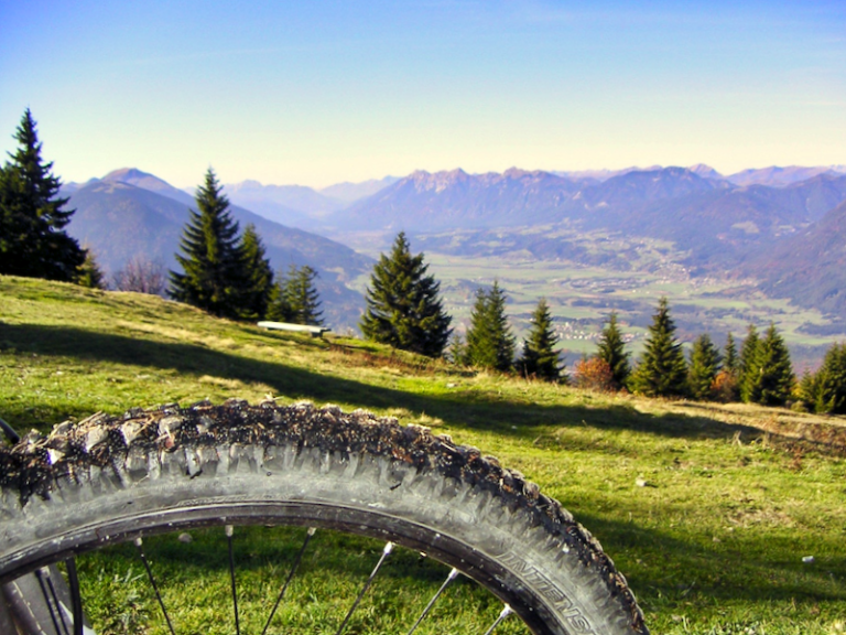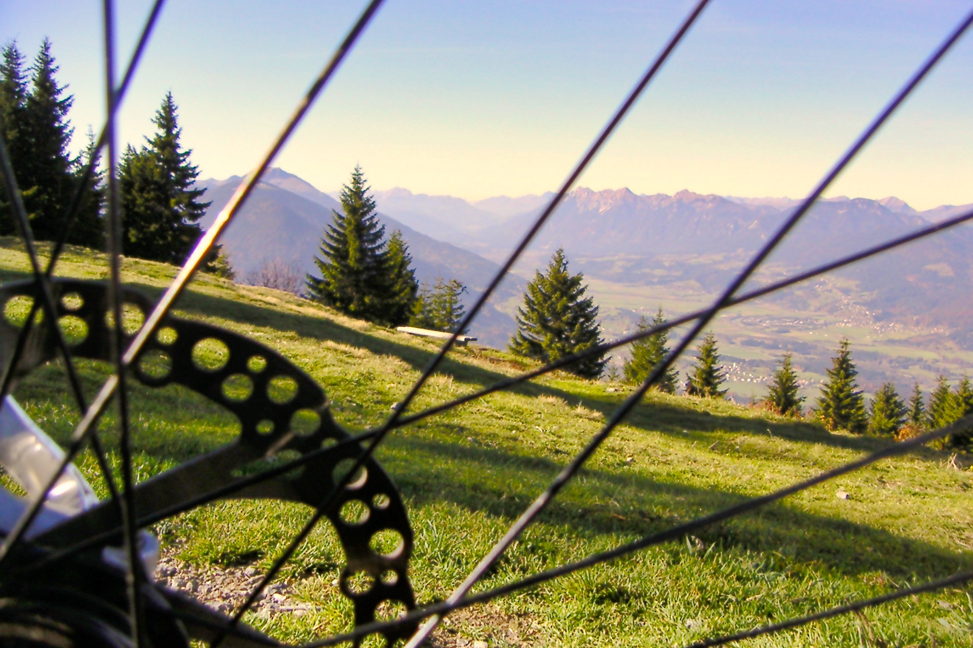 Era una di quelle domeniche d’ottobre che ti alzi, vedi la nebbiolina fuori dalla finestra e vorresti tornare a dormire, invece accendi il mac, vai sulla pagina delle webcam e scopri che sul Dreiländereck, cioè sul monte Forno, c’è un bel sole invitante e non puoi più accampare scuse. Credo di essere arrivato in cima verso le due del pomeriggio, non proprio un orario da montanari, e oltre a me, strano a dirsi, una sola coppia di escursionisti italiani, lui intento a fare foto mentre la moglie sembrava incuriosita dalla mia Banshee Scream. “Bella bici” mi dice, se uno mi rivolge un complimento del genere di solito non so cosa rispondere, anche niente, ma era una mora carina e simpatica e allora rispondo “Grazie!”, e ci stava anche un’esticazzi ma mi sono trattenuto. Vabbe’, se quel giorno potevo vantarmi mio malgrado di una top mtb per quanto riguarda l’attrezzatura fotografica credo di aver avuto la peggiore fotocamera digitale mai prodotta, una terribile Minolta Dimage X20 che una volta svenduta a qualcun’altro non ho mai rimpianto, la Banshee sì.