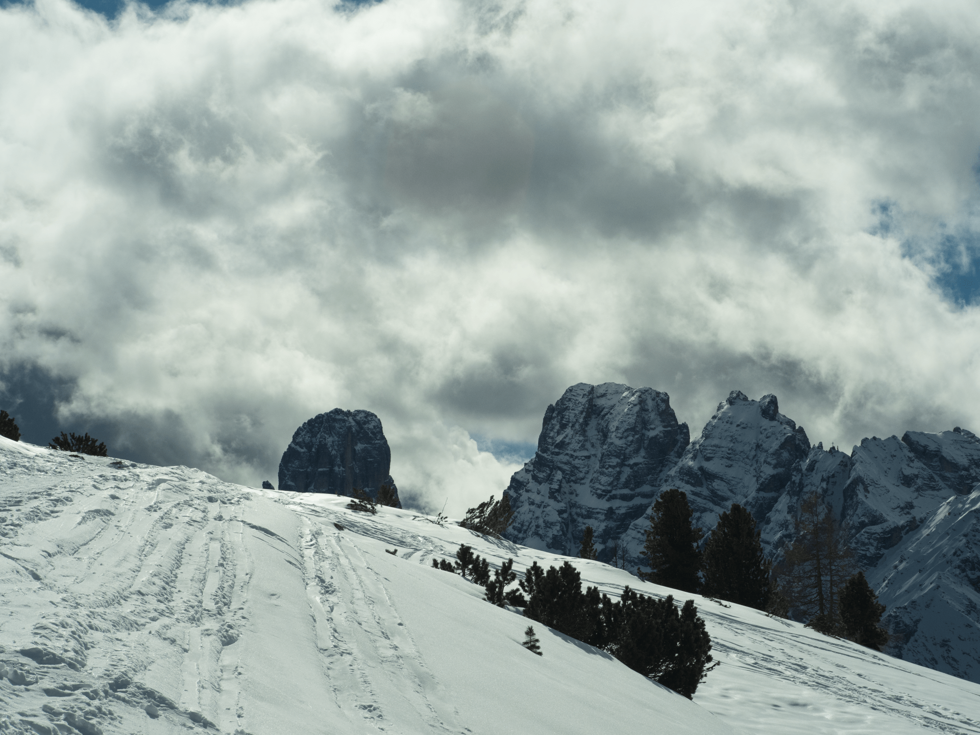 Se qualche giorno fa mi avessero detto che era possibile salire su una cima dolomitica d’inverno in sella ad una bici, beh, non ci avrei creduto minimamente, forse sulle Dolomiti di Saturno. Mai dire mai, ieri partito in tarda mattinata da Ponticello e imboccata la pista di slittini a Prato Piazza una volta arrivato là credevo di aver esaurito le possibilità per un fat biker medio e pure retired, poco male, il posto è super anche per cazzeggiare anche se sono circondato da una moltitudine di escursionisti e fondisti. Perchè invece non seguire quell’invitante pista lisciata da ciaspolari e ski, i chiodi delle Dillinger fanno presa che è una meraviglia e allora andiamo a vedere cosa c’è dietro l’angolo. Dopo un lungo traverso e qualche tornante arrivo in vista di una piatta cima con tanto di croce, apro la Tabaccomapp sul telefono per capire dove cavolo mi trovo e… quella è proprio Cima Specie, o Strudelkopf che suona più appetitoso, e ci sto arrivando con la fat, non ci credo. Mi avvicino all’ultima salitina e già il fatto di essere l’unico cretino in bici fra tanti pedoni, think different proprio, mi sta un po’ rovinando il piacere di essere lì, oggi però chissenefrega, apro il boost per la rampa finale e zigzagando fra i pensionati arrivo alla croce. E te pareva che non usciva un commento sulle bici in montagna, ad aggiudicarsi la palma del fenomeno di turno una vecchia triestina incattivita dalla vita che se ne esce con “mi a quel lì ghe devo dir qualcosa”, dì pure quel che vuoi, oggi mi sento buono e idontgiveashit, era meglio la settantenne tedesca sorridente che ho incrociato in salita che mi ha salutato con un bel “Schneebike!” centrando perfettamente il concetto. In cima sosta giocoforza breve che la neve poi si scalda e c’è la fila per sedersi sulle pietre scoperte per la pausa pranzo, sembra di essere ad un dopolavoro ferroviario, la tenuta delle gomme in discesa è qualcosa di stupefacente e mai provato prima d’ora, stento a credere a quello che sto facendo quassù e scendo con una scioltezza mai provata prima d’ora sulla neve fino a Prato Piazza in un niente, poi sulla pista di slittino un po’ di pappa ma va bene lo stesso, quando mai 800 metri di discesa così?
