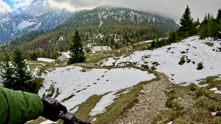 Passare nel giro di un mese dalle Juggernaut alle Dillinger per un fat biker è come dire passare in poche settimane dalla maglietta a maniche corte sudata al piumino, lunedì scorso tutto mi sarei aspettato salendo al Bivacco Btg. Gemona in Val Dogna (salita con bici a spinta ovviamente) tranne che trovare 50 cm di neve fresca tanto da dover abbandonare la fat e proseguire a piedi fin poco sotto il bivacco a 1800 metri, poi ne avevo abbastanza delle scarpe bagnate visto che la mattina a casa m’immaginavo giusto una spolverata di neve quel tanto che basta per abbellire il sentiero 609 e non mi è neanche venuto in mente di portare scarpe invernali. Alla fine della giornata porto a casa una bella e inaspettata camminata sulla neve e qualche bella ripresa del Montasio fra le nuvole d’autunno, expect nothing, accept everything.